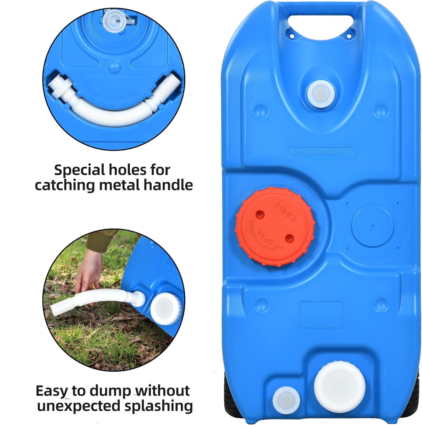 Easy to move: One person or the elderly can easily move the portable tank or empty it when it is full of water, because it is equipped with 2 rolling wheels and durable metal handle