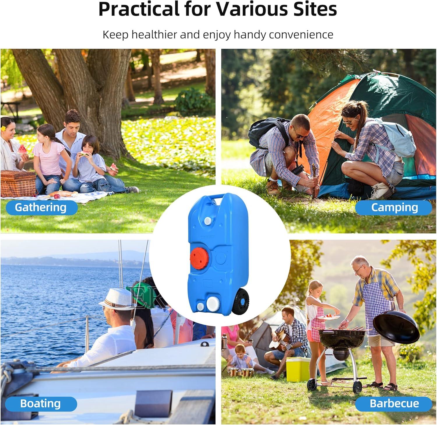 Wide application: No matter where you are, the camping water tank gives you much convenience when you are taking a picnic, hiking, camping, wedding, festivals, sports events, construction worksites, etc