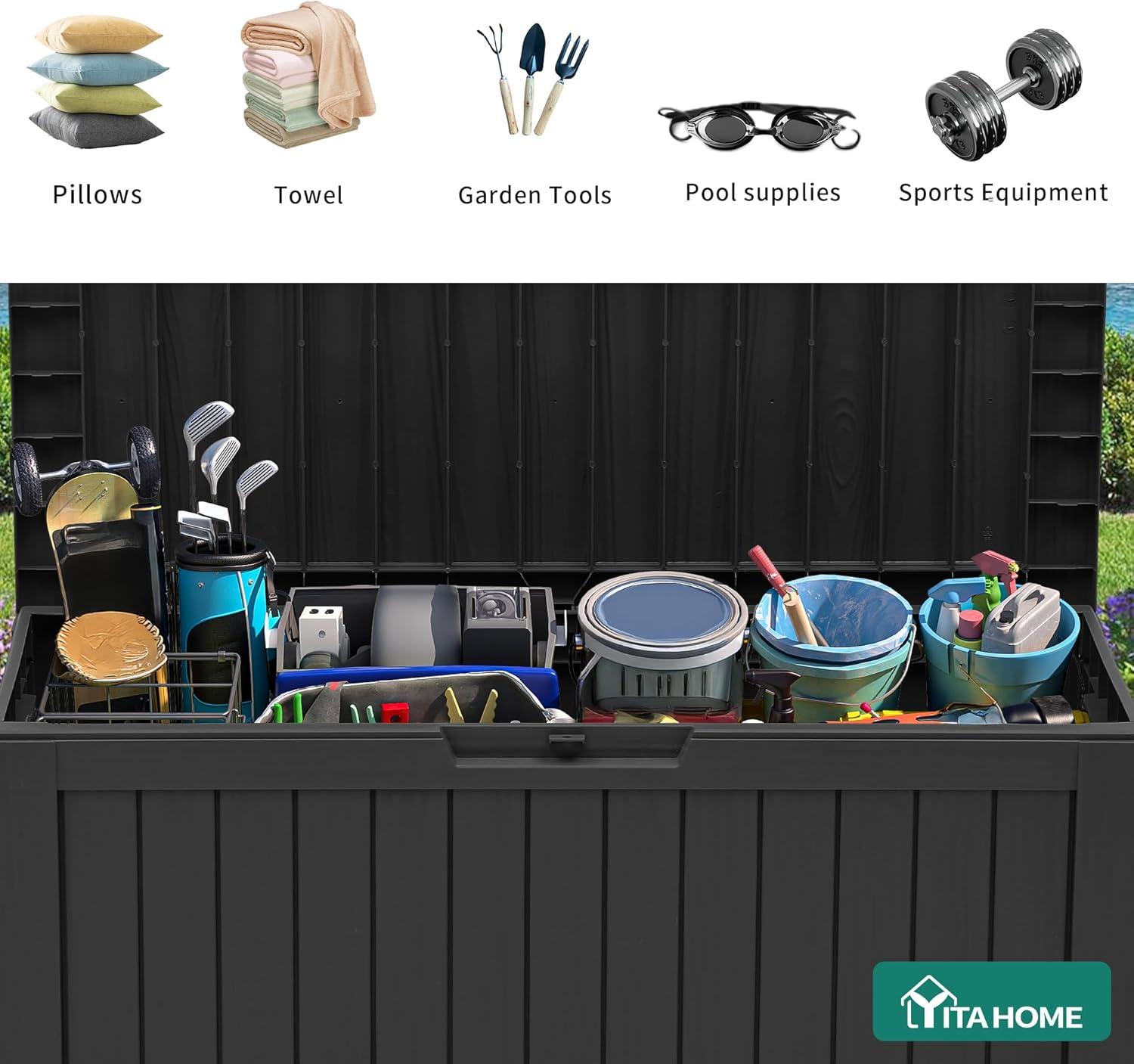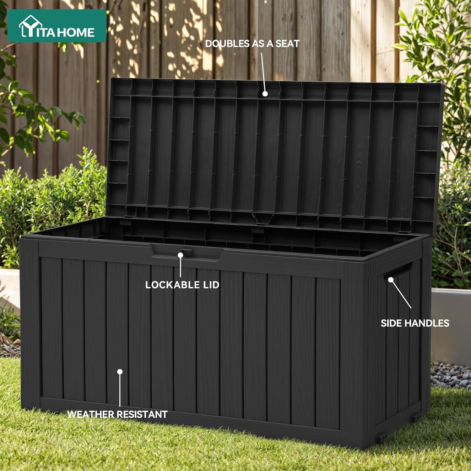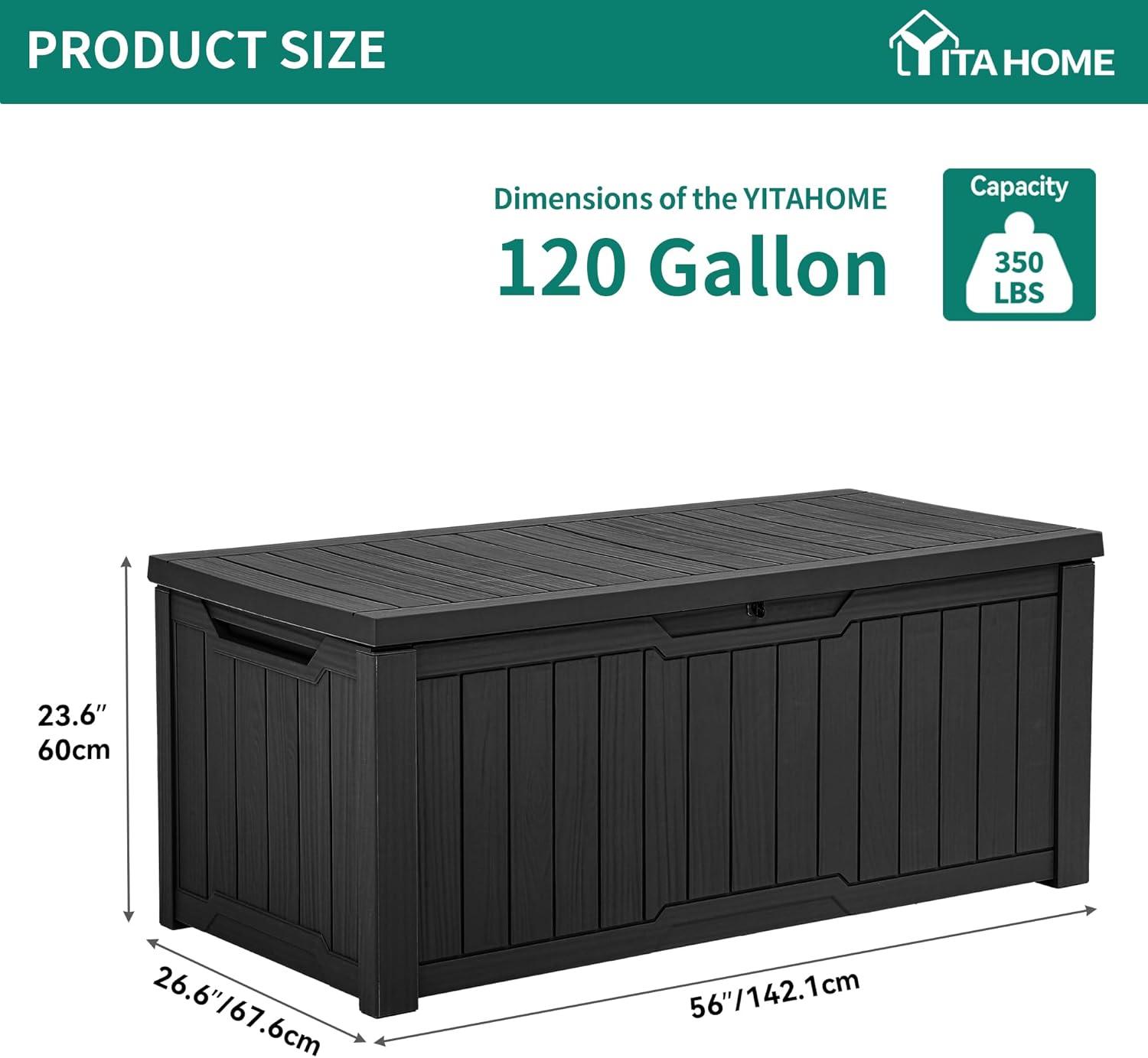 YITAHOME 120 Gallon Resin Deck Box, Large Outdoor Storage Box for Patio Cushions, Garden Tools, Pool Supplies, Lockable, Easy With Tool Assembly, Extra Seat or Table (Black)(Black)