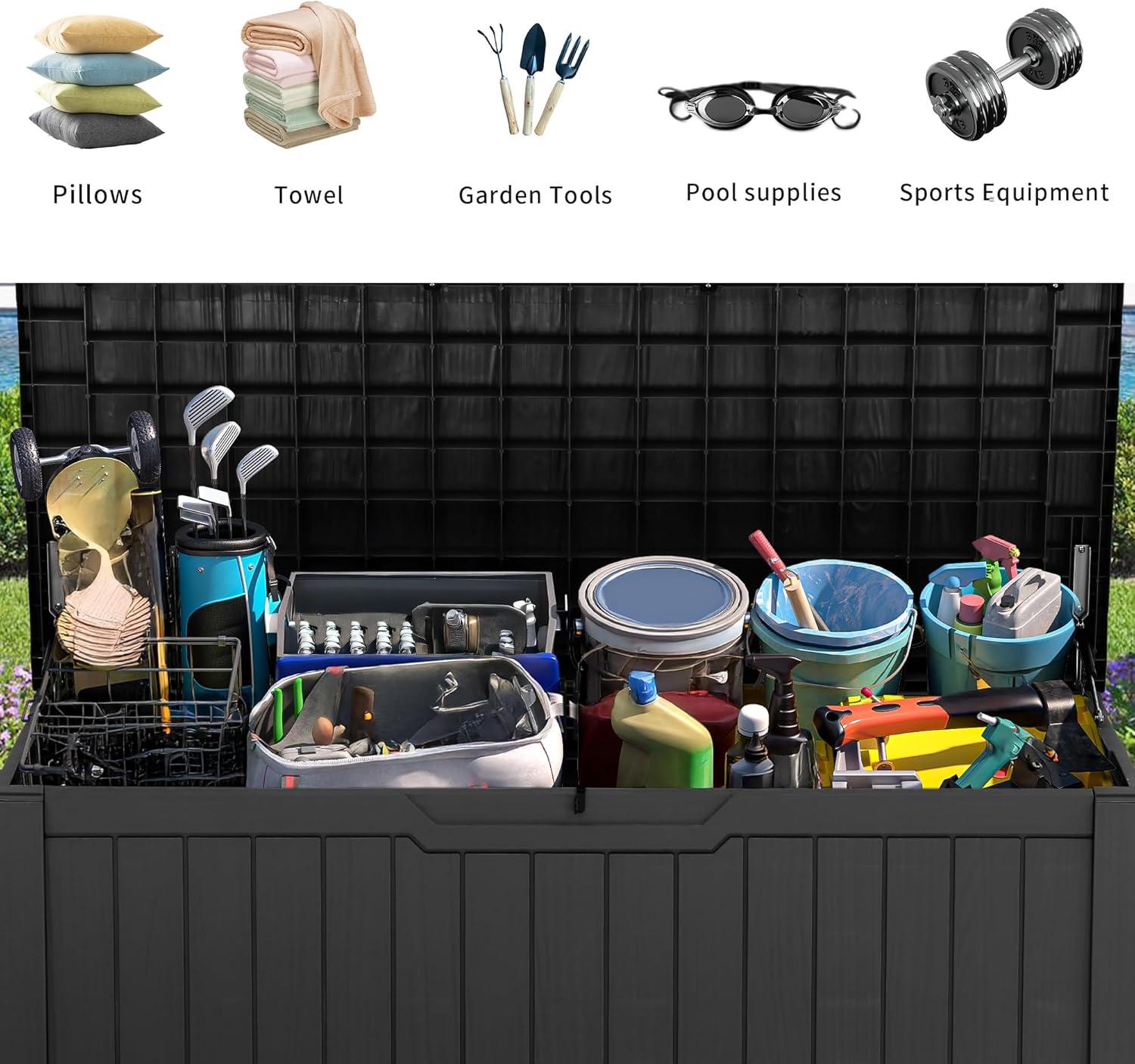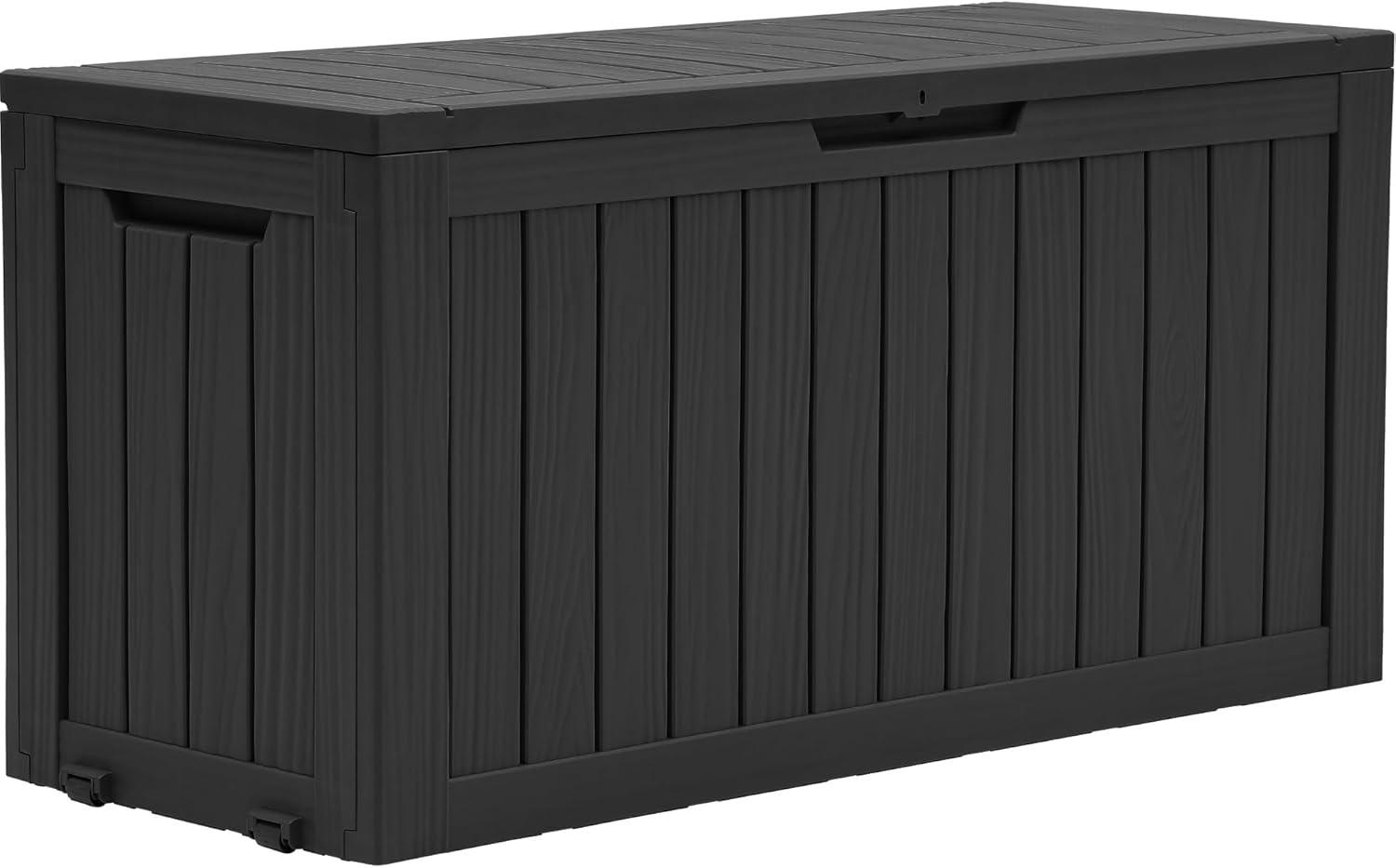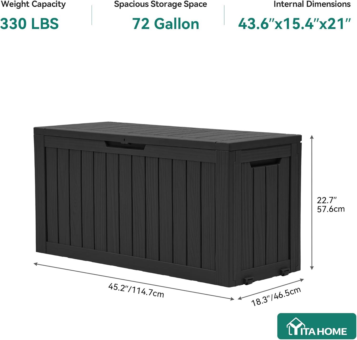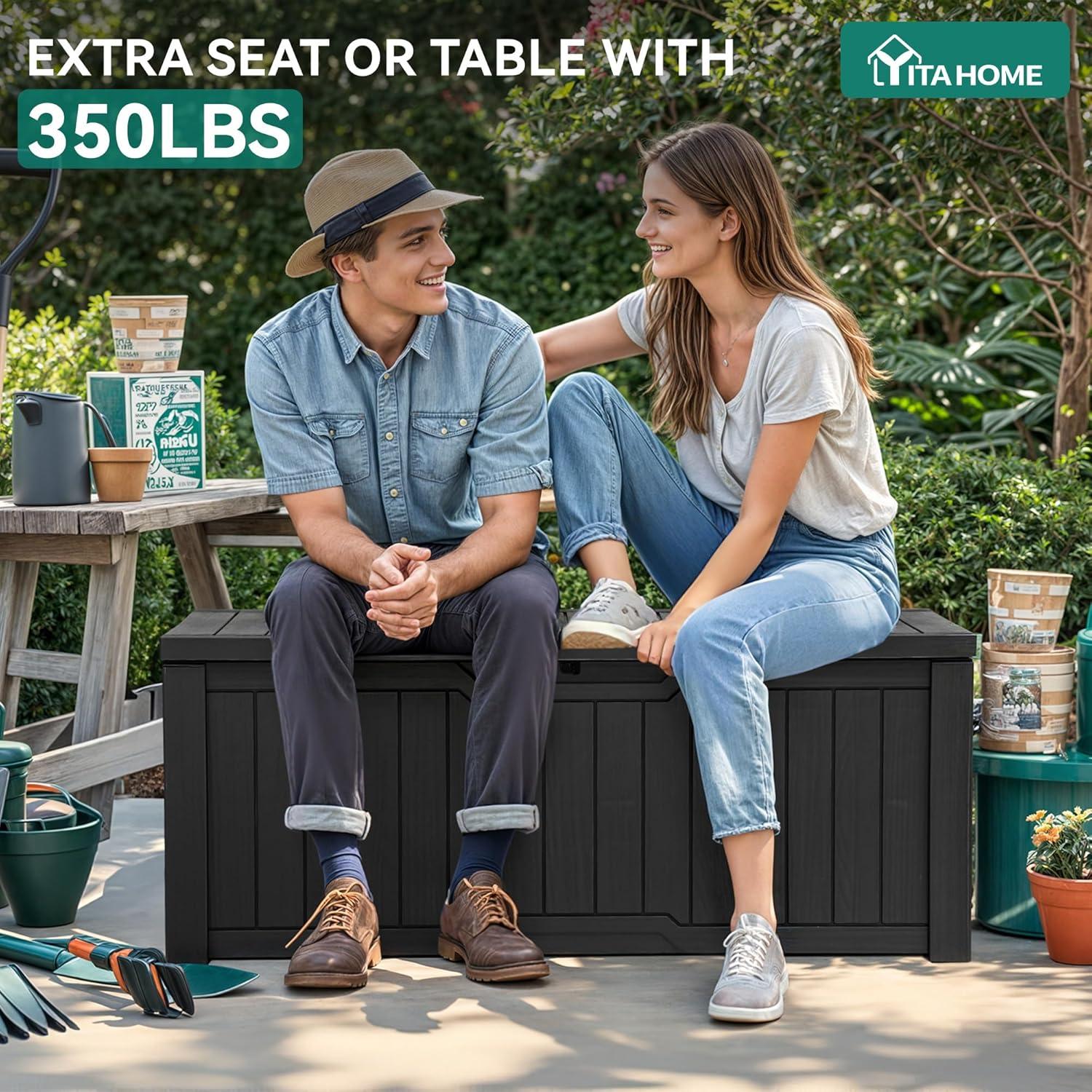 YITAHOME 120 Gallon Resin Deck Box, Large Outdoor Storage Box for Patio Cushions, Garden Tools, Pool Supplies, Lockable, Easy With Tool Assembly, Extra Seat or Table (Black)(Black)