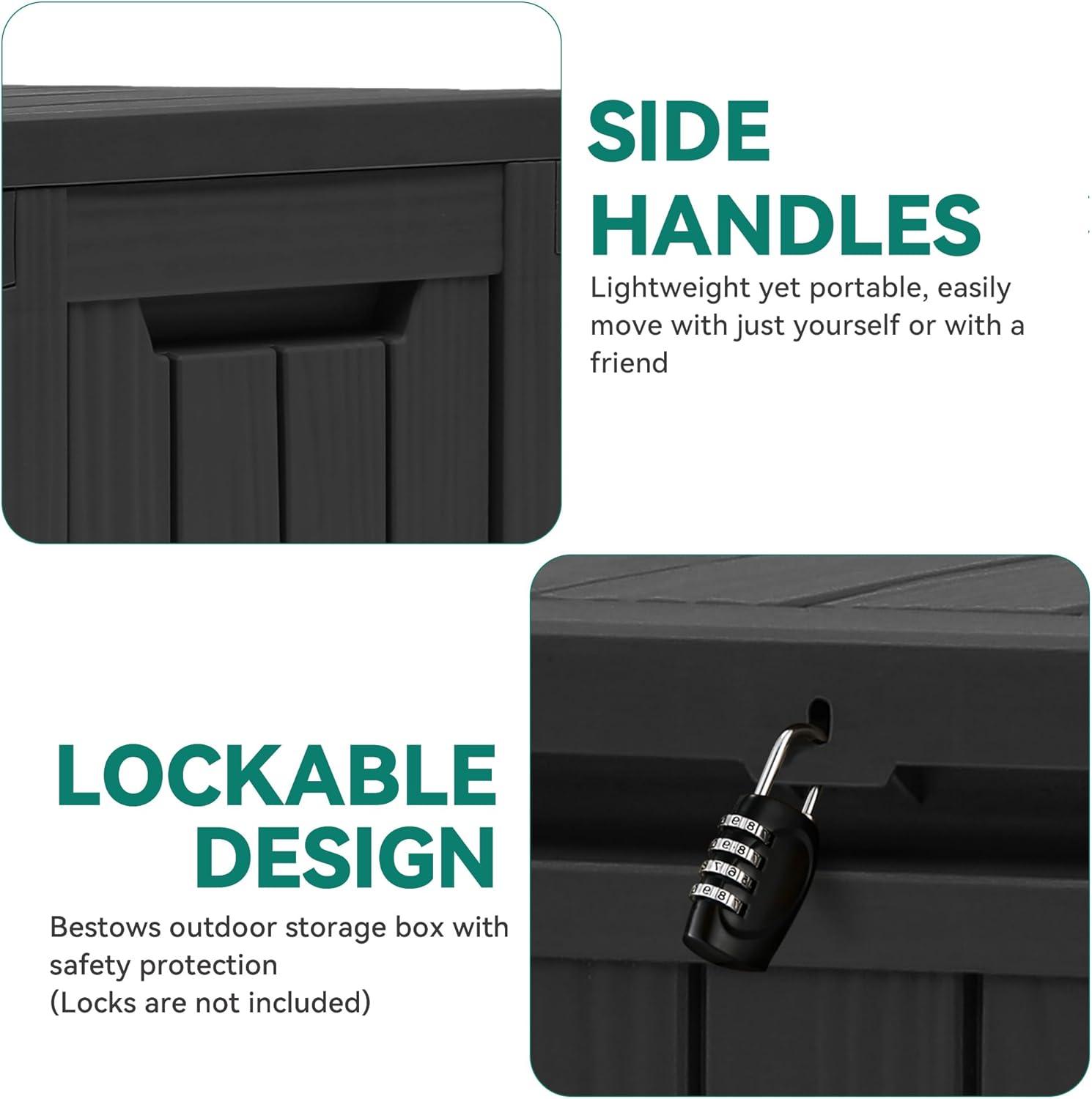 Effortless Care: Made from weather-resistant resin, this black outdoor storage box keeps the interior dry and the exterior fade-resistant, ensuring long-lasting durability; Simply wipe clean to maintain its pristine appearance