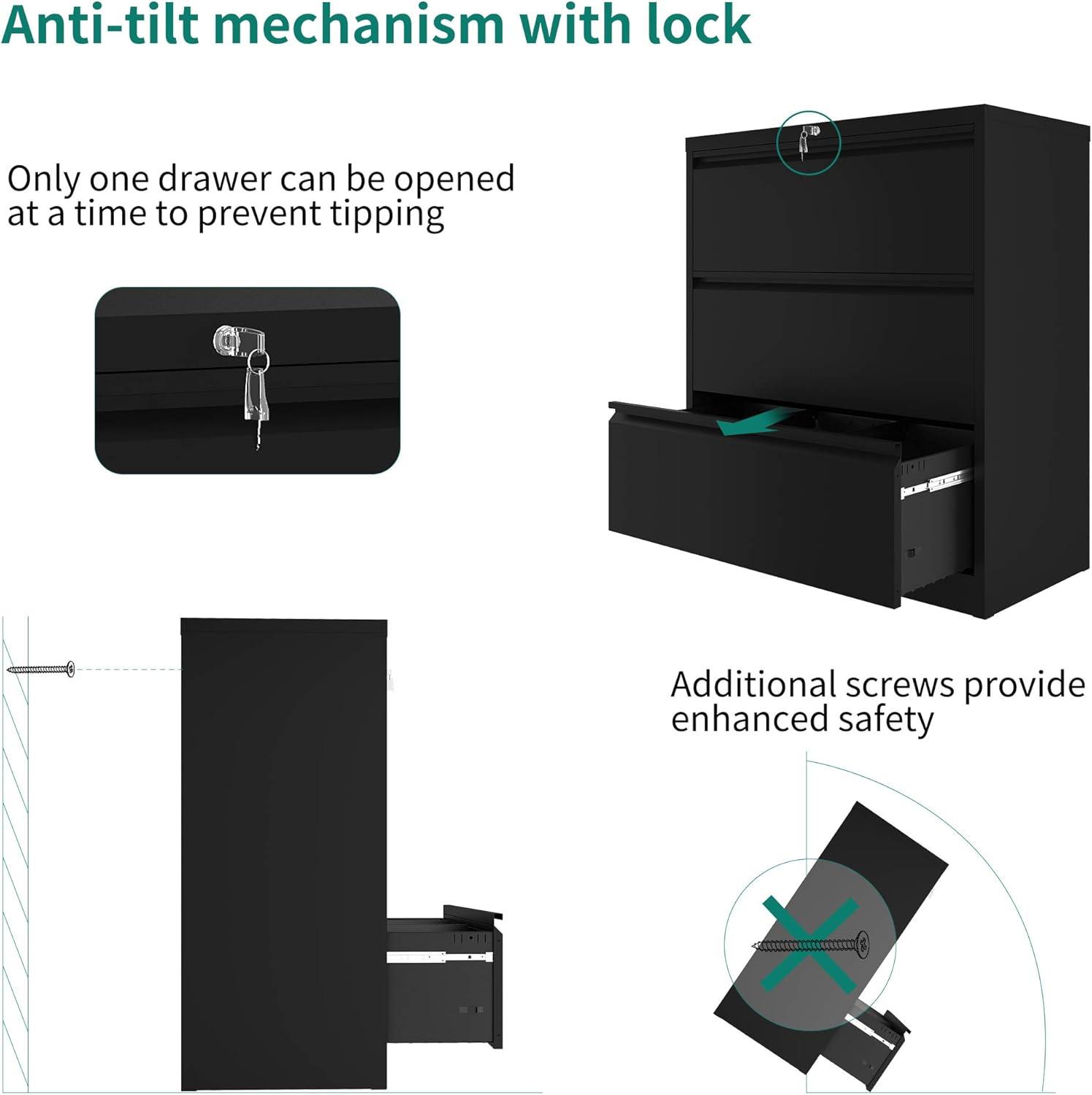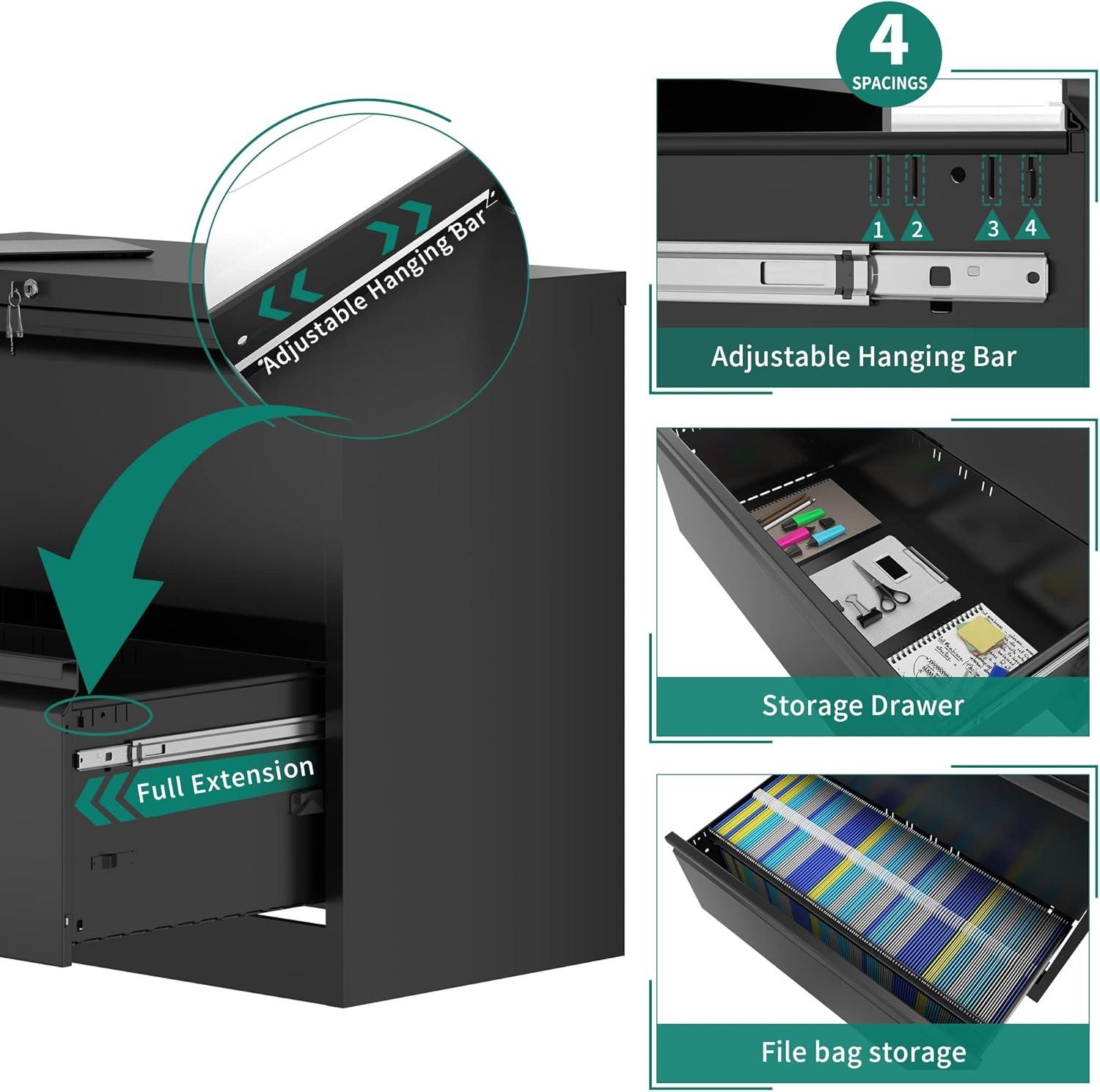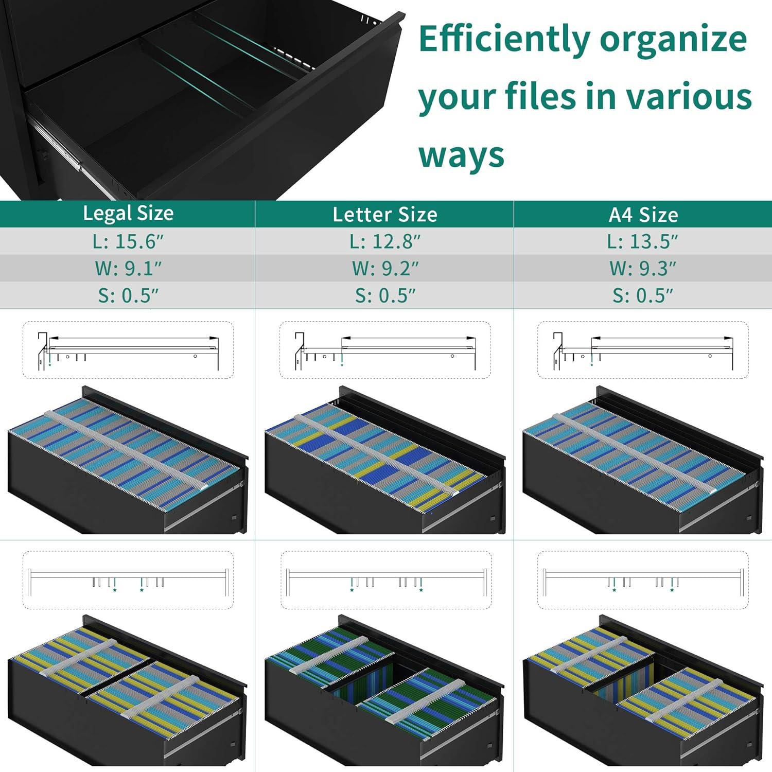 Lockable File Cabinet with Footpad: This lateral file cabinet contains two locks keep your belongings private and safe; plastic pad effectively reduces noise and protects your floor from scratches
