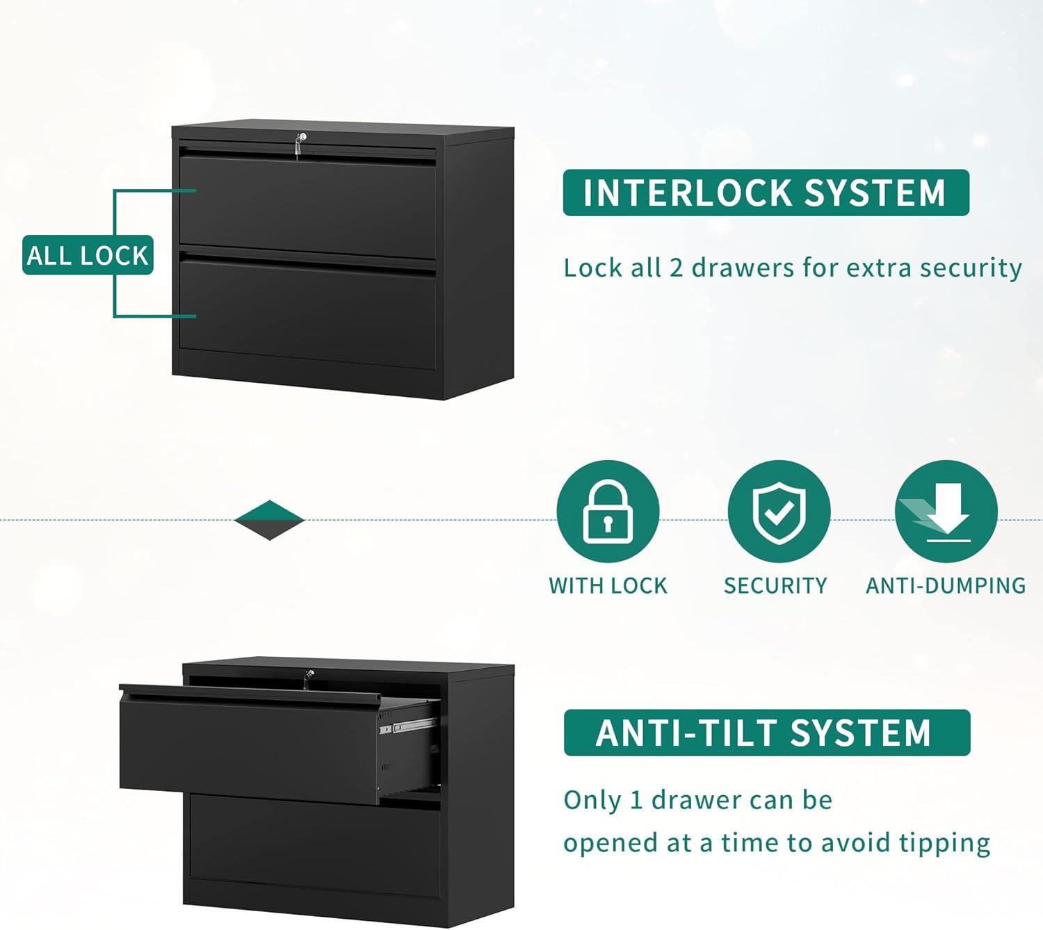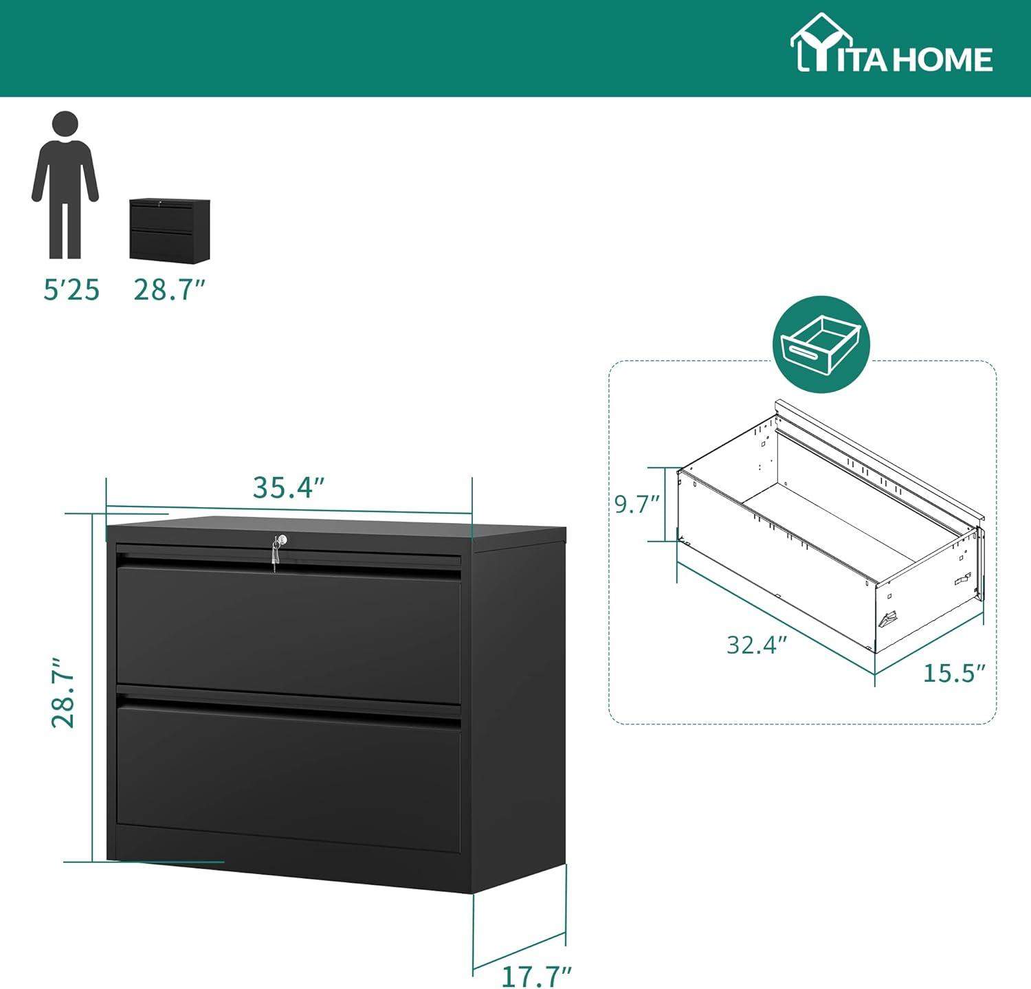 YITAHOME 2 Drawer Lateral File Cabinet, Stainless Steel Wide Lateral File Cabinet with Lock, Metal Filing Storage Cabinet for Legal/Letter A4 Size, Assembly Required,Office Organizer, Black(Black)