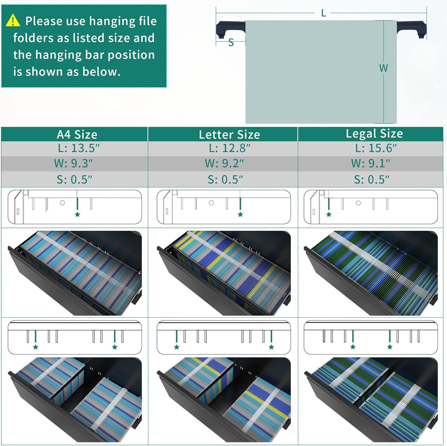 Humanized Design – The filling drawers are equipped with removable hanging bars to store different size, such as letter, legal and A4 size hanging file folders. Full-extension ball bearing drawer slides provide easy access when open it. (PS: requires self-assembly)
