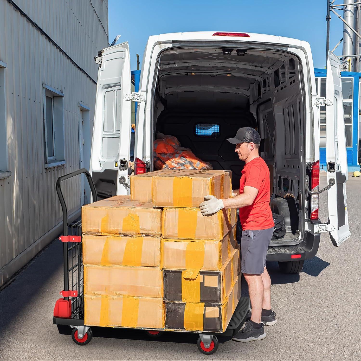 Versatile Application​​: Flatbed cart for boxes, appliances, heavy loads; panel mover dolly for pipes, sheet materials, rolled goods; Fitting for workspace, garage, office, home, warehouse, job site; Breaks down compactly for storage in trunk or garage