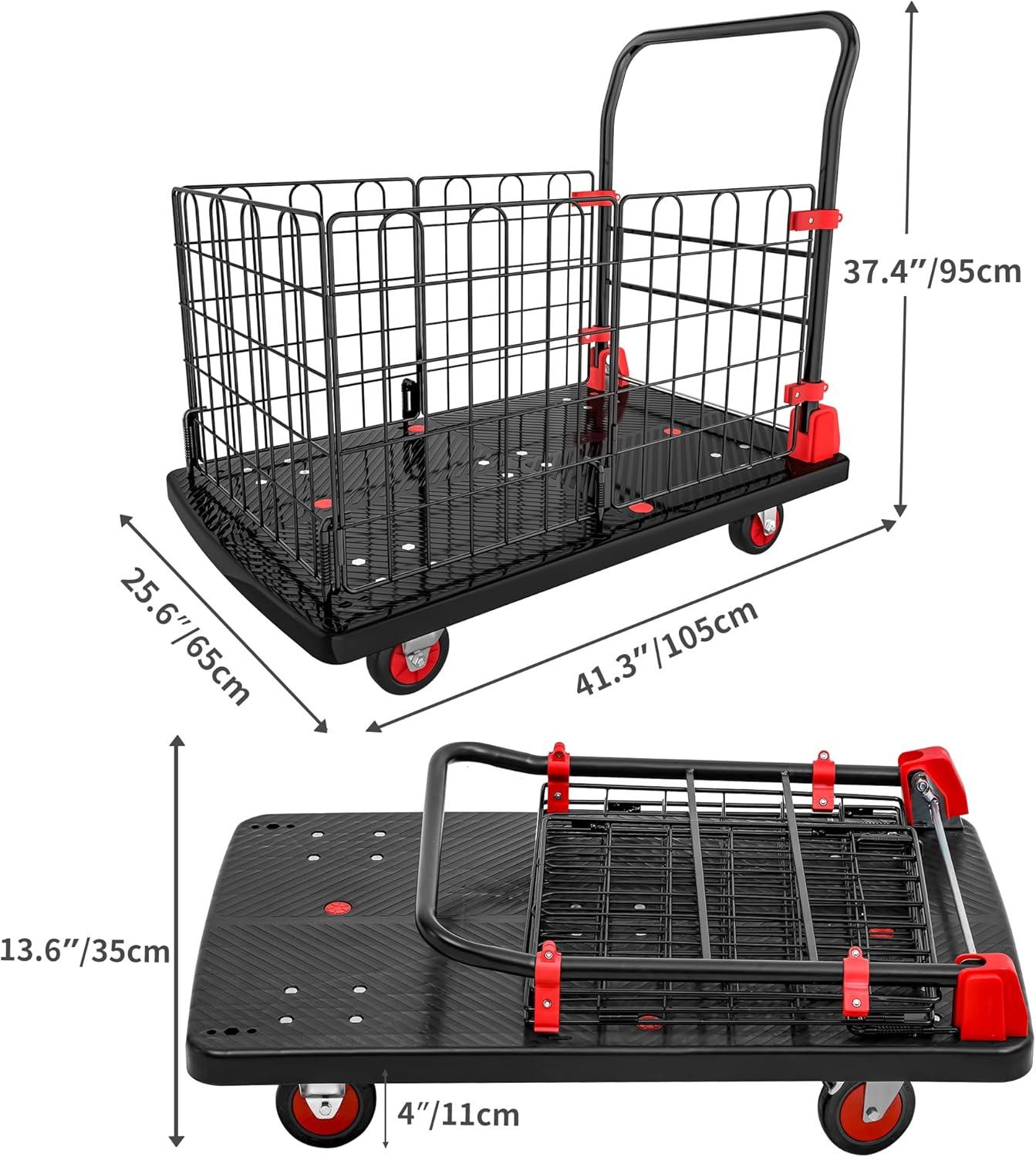 YITAHOME 2 in 1 Drywall Cart Heavy Duty, Folding Platform Carts with Wheels, Heavy Duty Platform Cart with Sides, Steel Panel Truck Carts with 4 Hand Drails(1000 LBS)