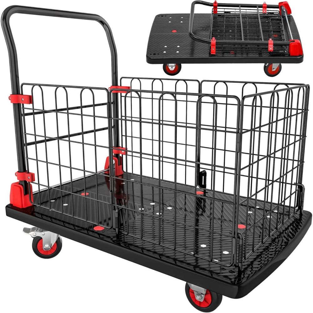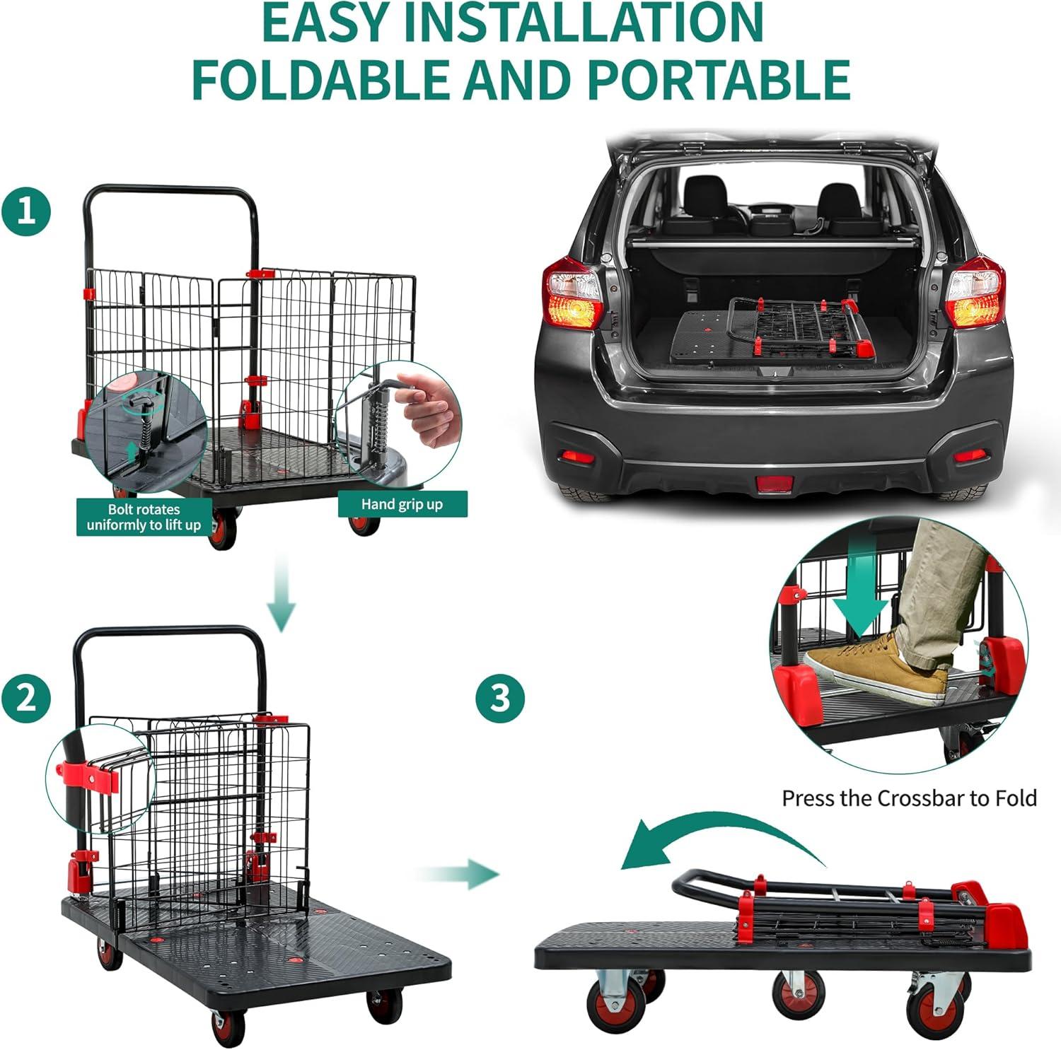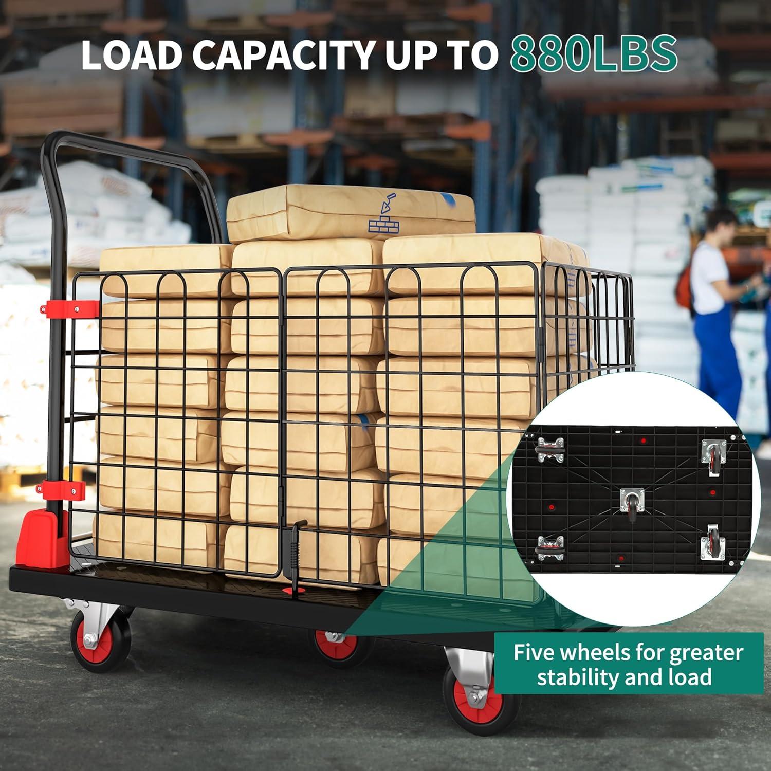 2200 LB Heavy-Duty Capacity​: YITAHOME heavy duty platform truck cart reinforced steel structure with thickened parts lifts 2200 lbs; Anti-slip texture of this panel cart and flat cart secures loads; Powder-coated surface on flatbed truck resists rain, sun, and corrosion for all-weather durability