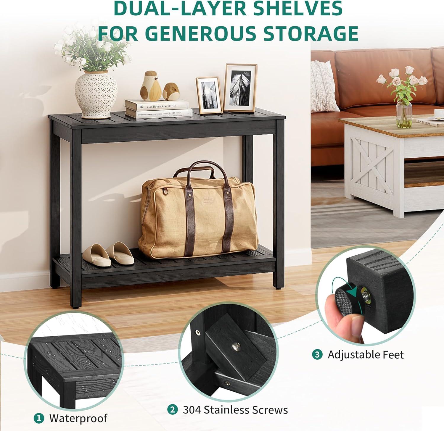 YITAHOME 38.3" Patio Bar Table Entry Console Table, 2-Shelf HIPS Indoor Outdoor Height Table Multifunctional Buffet Storage Organizer with Adjustable Feet, Black