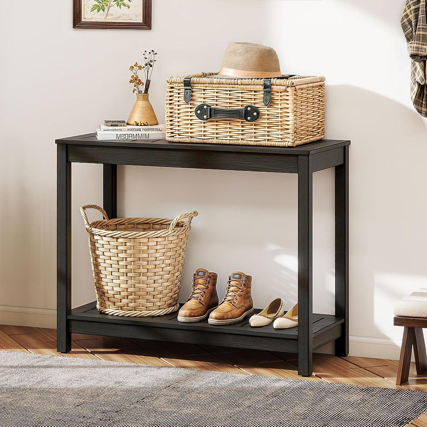 Double-Tier Storage Delight: More storage, less hassle! The top tier shows off your favorite decor or keeping your drinks and books close, while the bottom tier handles larger items like vases and baskets. Organized bliss, right at your fingertips