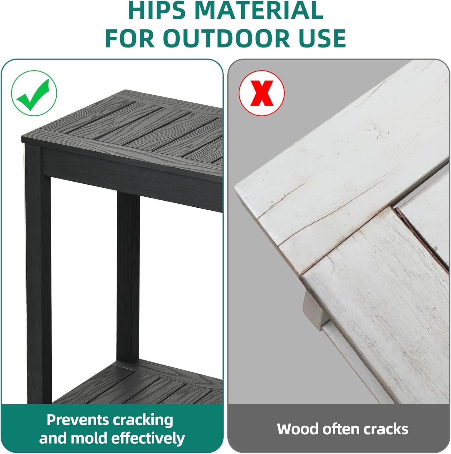 Weatherproof Wonder: No cracks or corrosion worries. Our outdoor bar table, crafted from high-density High Impact Polystyrene (HIPS), laughs in the face of sun, rain and snow. It stays crack-proof and corrosion-proof, keeping its gorgeous look through any weather
