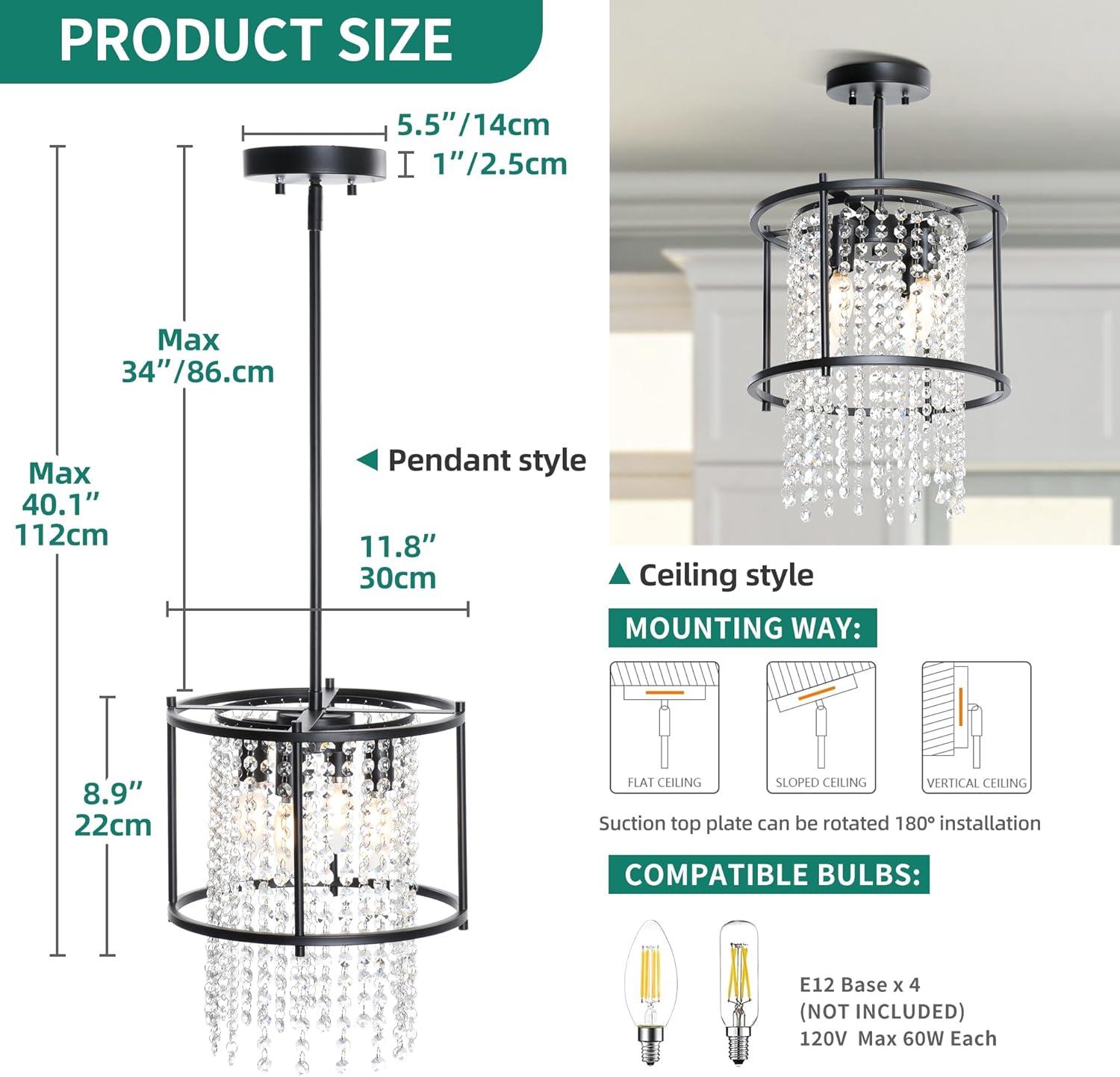 COMPATIBLE WITH E12 BULBS: The kitchen chandelier works with 4 various Edison 12 LED/Halogen/Incandescent/CFL bulbs (60W Max, NOT INCLUDED). The spotlights allow you to enjoy bright or natural lighting and are dimmable when used with a dimmer switch and dimmer bulbs