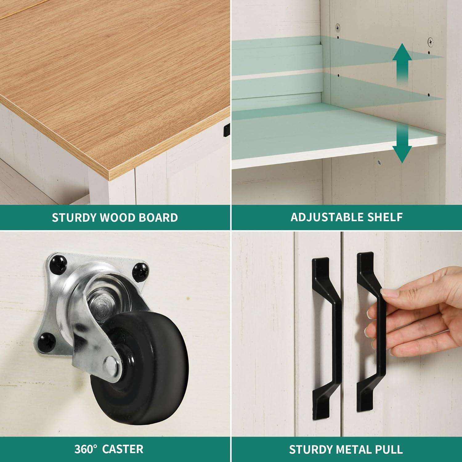 Spacious Storage Space: Including 1 drawers for storing utensils, dinnerware and so on, as well as 3 side open shelves for spices. The height-adjustable shelf inside of cabinet doors accommodates various kitchen items