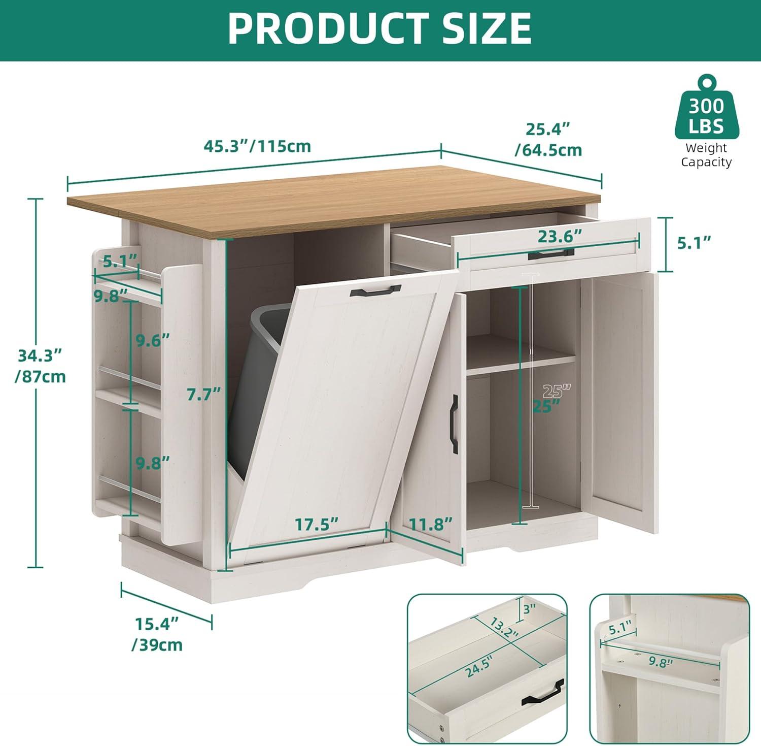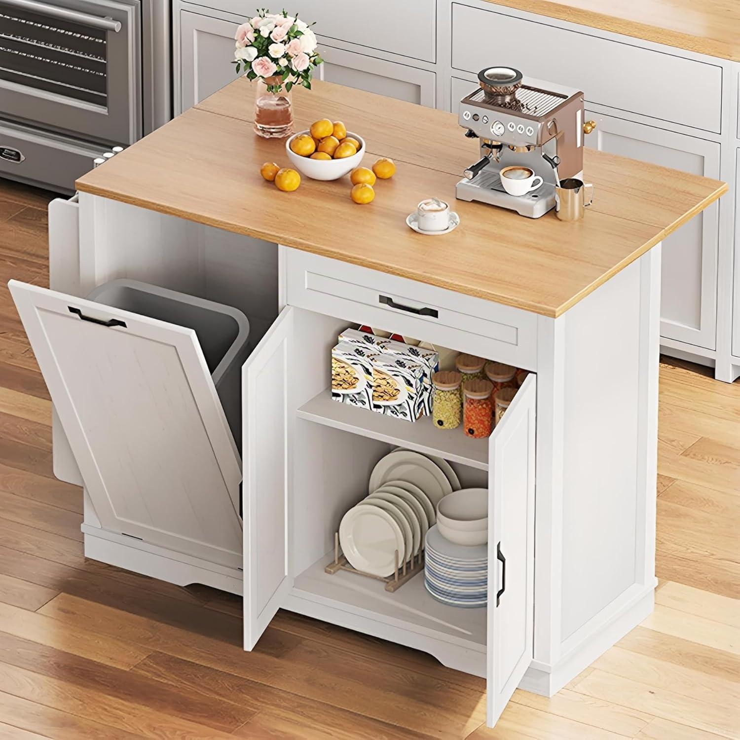 Tilt Out Trash Can Cabinet: The garbage bin storage cabinet is a great addition to your kitchen island. It can house a 13-gallon trash can (not included), preventing the spread of odors and keeping your kitchen & dining room fresher and cleaner