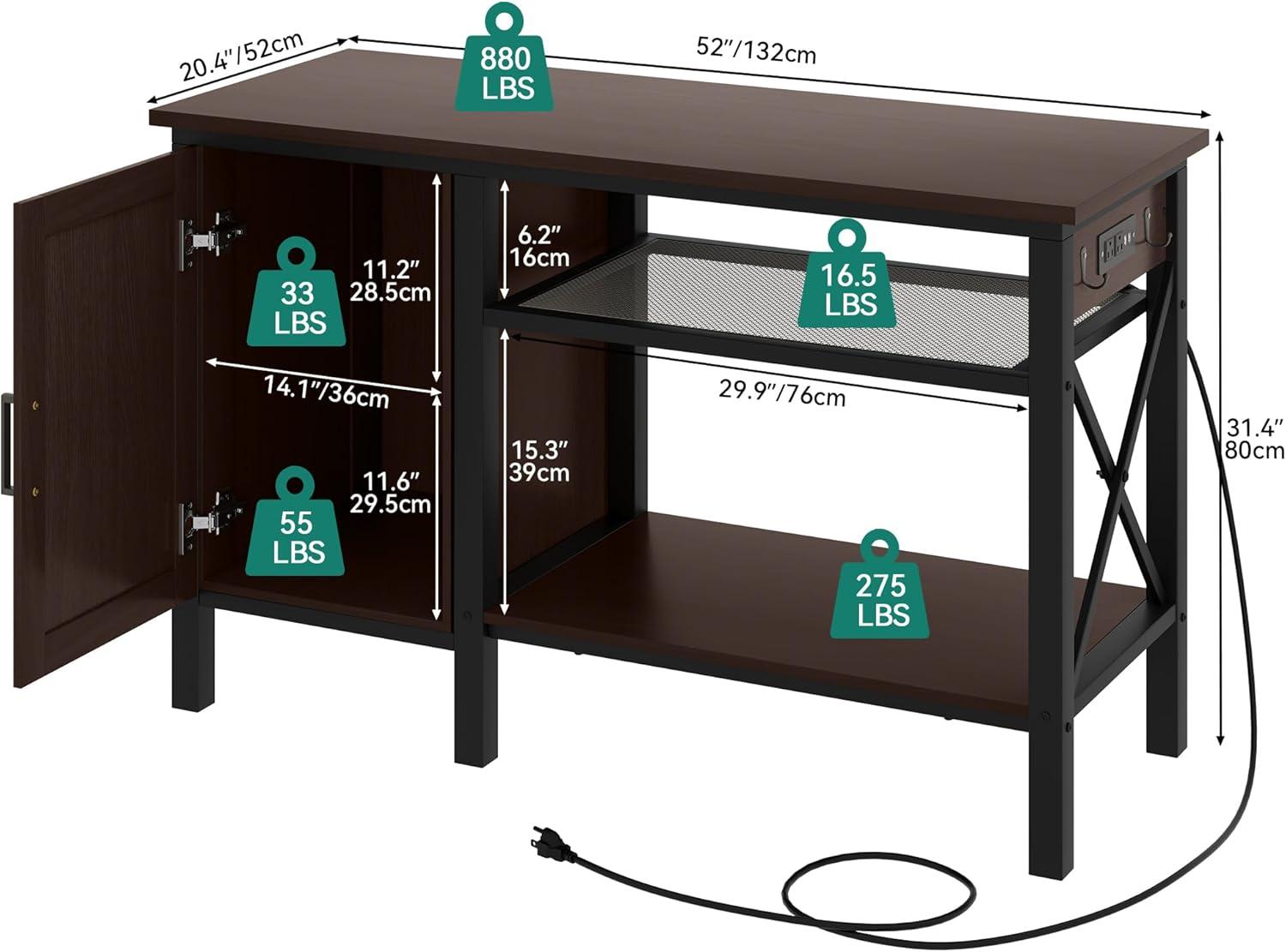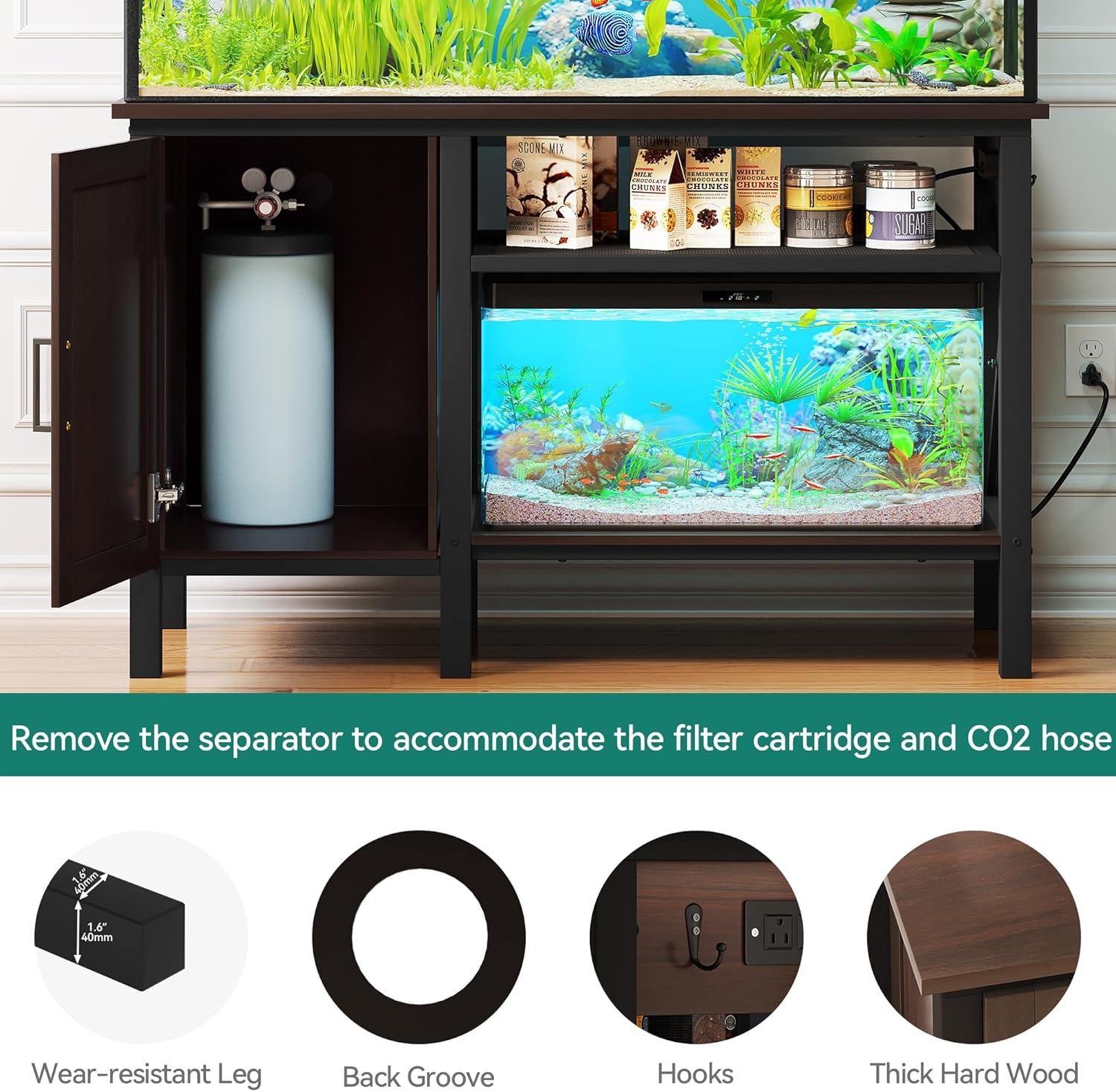 YITAHOME 55-75 Gallon aquarium stand with Power Outlets, Heavy Duty Metal Fish Tank Stand, Cabinet for Fish Tank Accessories Storage suitable for Fish Tank, Turtle Tank, 880LBS Capacity, Brown(Brown)