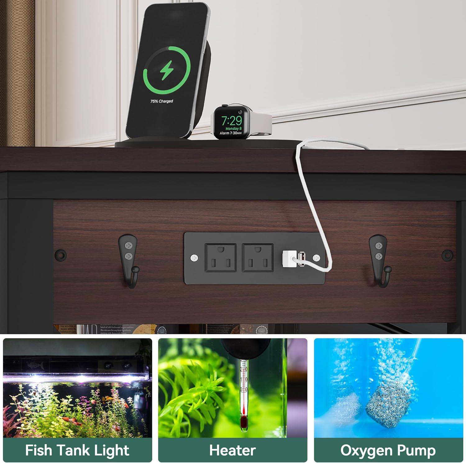 Robust and Secure: The aquatic stand is robust, hard to wear, and enduring, featuring sturdy P2 particleboard; It upholds a maximum weight capacity of 880 lbs on the tabletop, 16 pounds on the wire mesh, and 250 pounds on the base