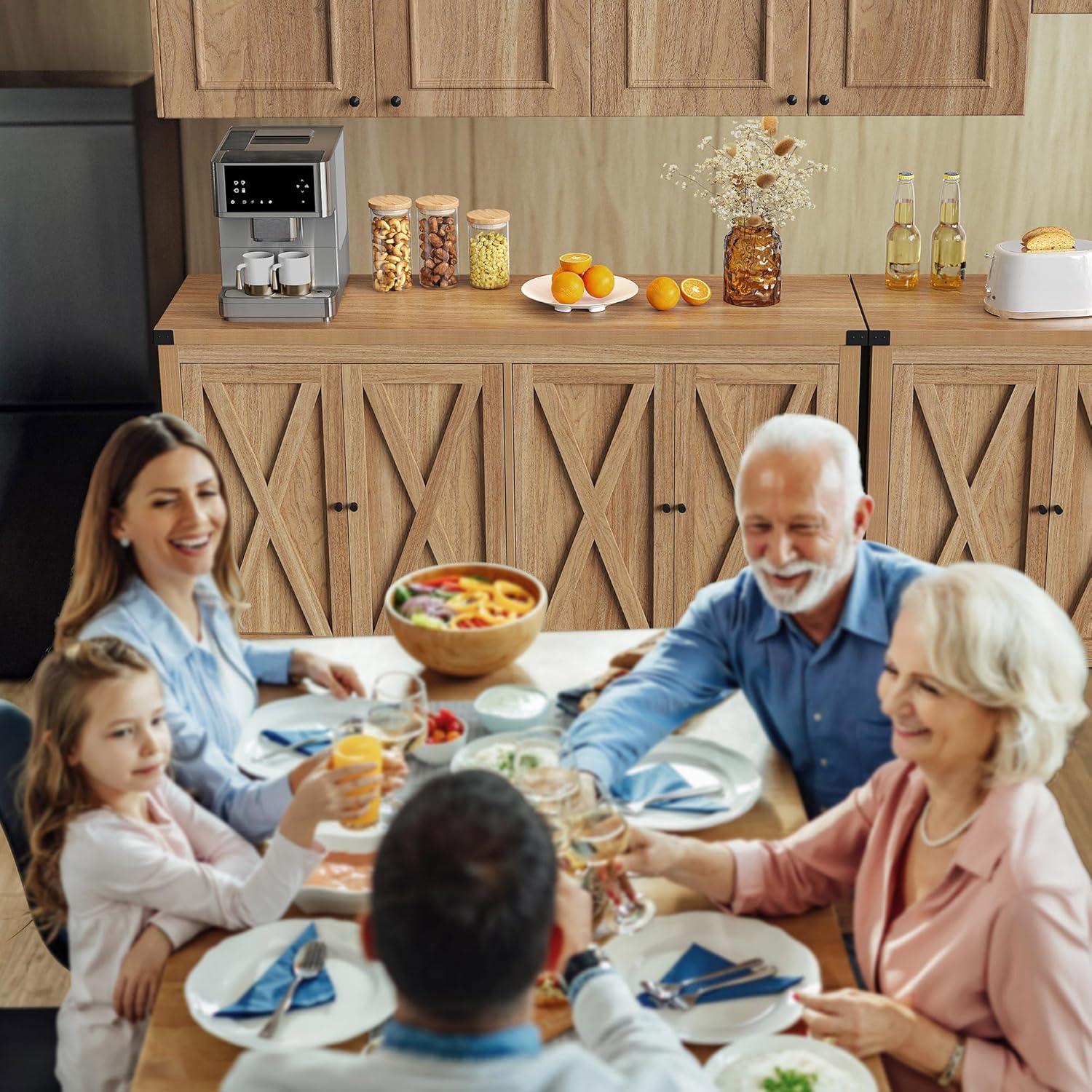 Multi-functional Storage Cabinet: The distinctive farmhouse style sideboard, 55 inches is large enough to organize all your dishes and other miscellaneous items. This organizer can also be used as a coffee bar cabinet, a TV stand, or even a console table in the hallway