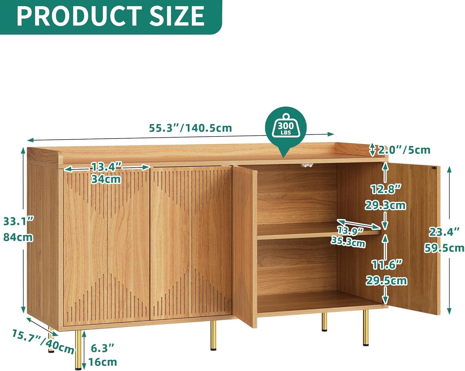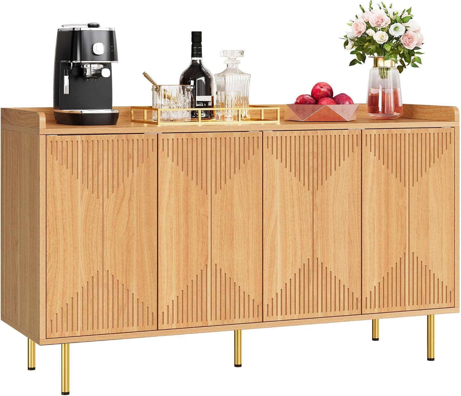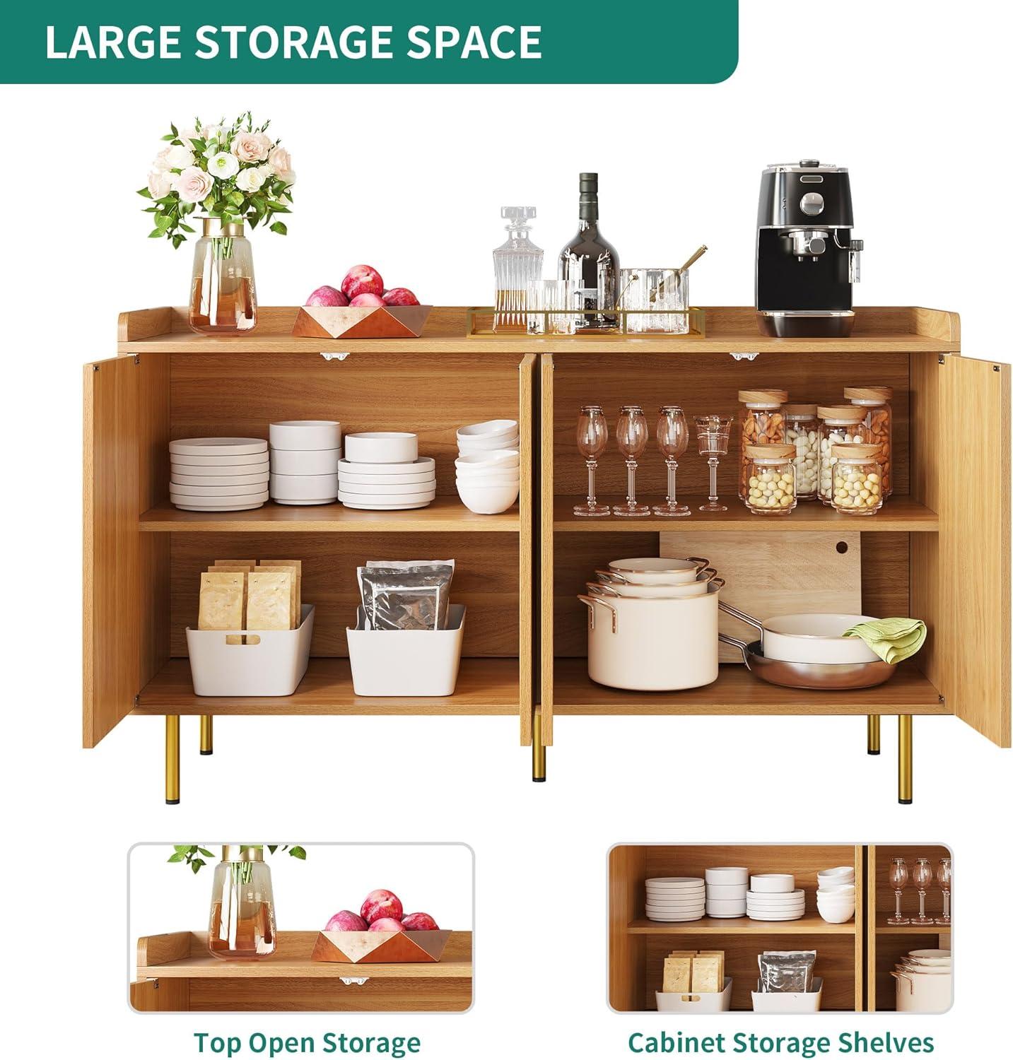 YITAHOME 55'' Sideboard Buffet Cabinet with Storage, Modern Kitchen Storage Cabinet Coffee Bar Cabinets for Dining Room, Kitchen, Black(Natural)