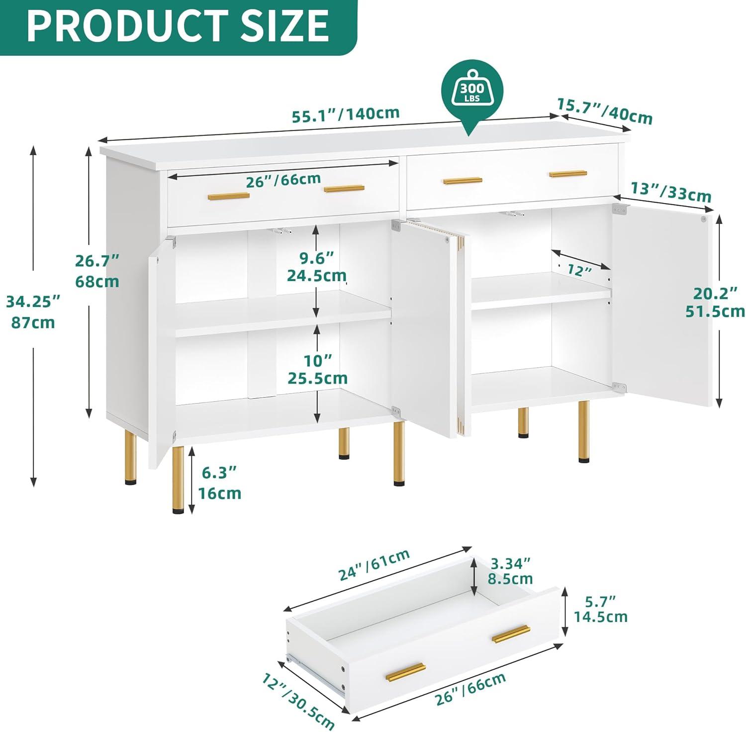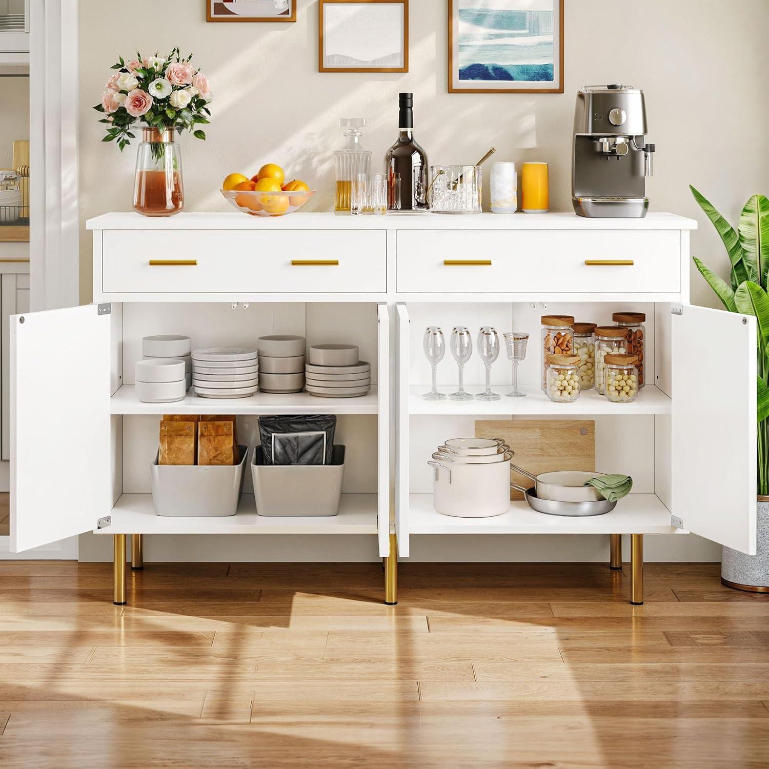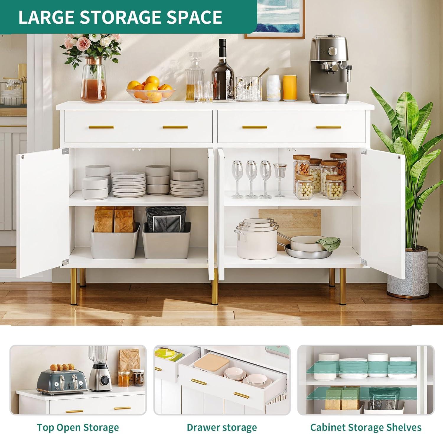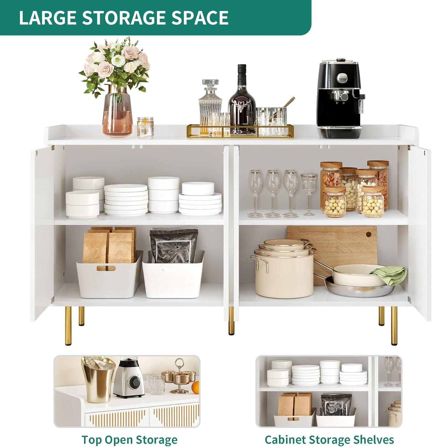 YITAHOME 55” Sideboard Buffet Cabinet with Storage, Modern Kitchen Storage Cabinet Coffee Bar Cabinets for Dining Room, Kitchen, Black(White)