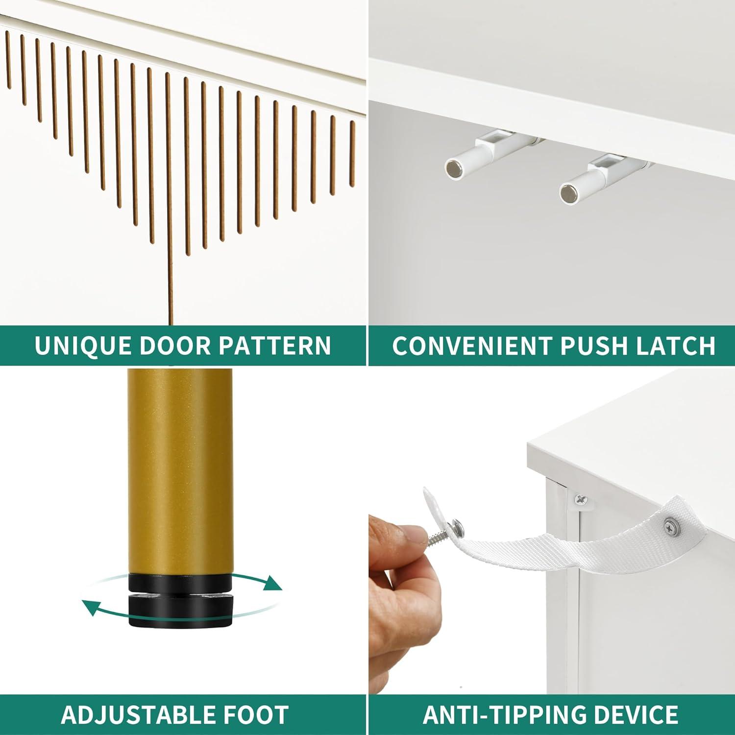 Rebound Mechanism Design: This sideboard cabinet is cleverly designed without the need for handles, just press the top of the cabinet door and the door will open smoothly. When your hands are full of items, you can also easily open the cabinet door