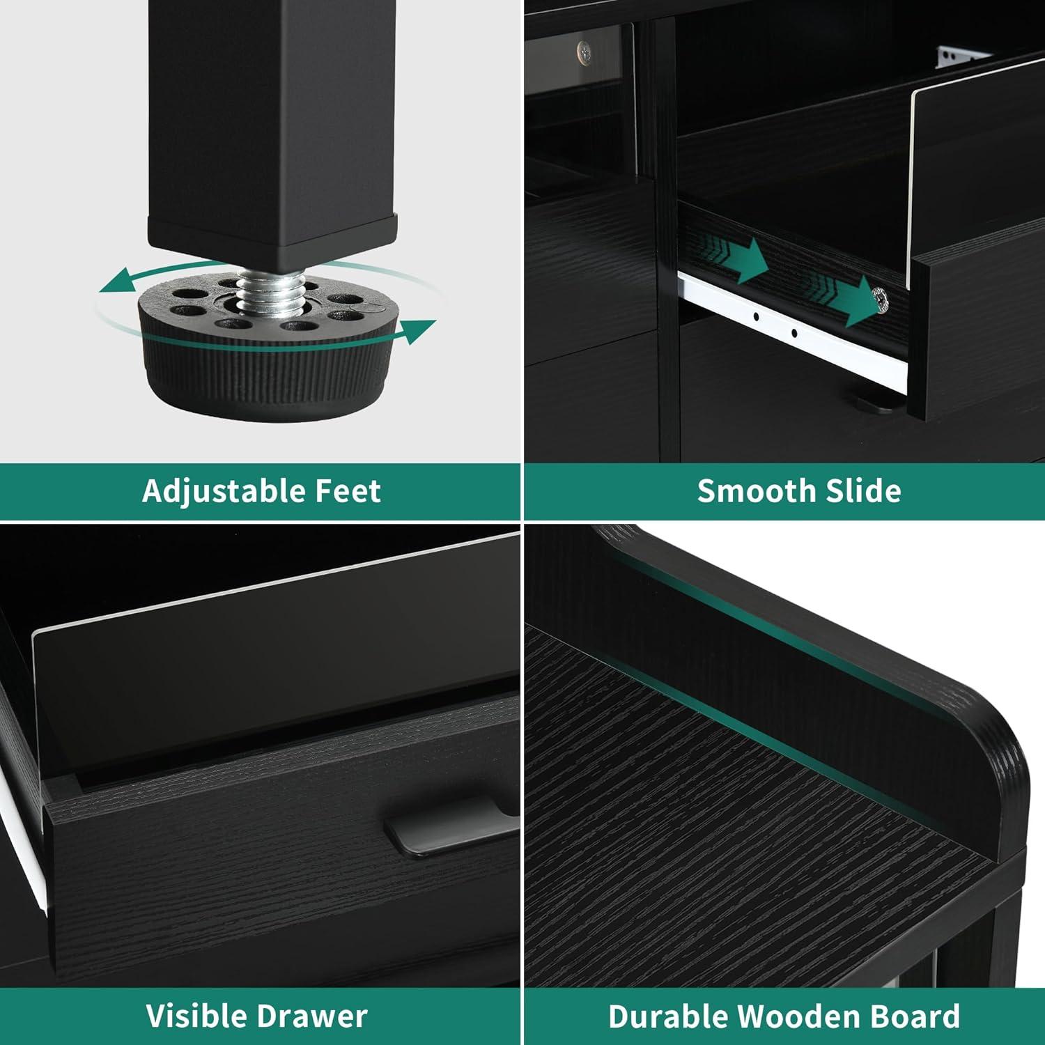 Stable and durable build: Made of durable and sturdy materials, this piece ensures years of use. Robust metal rails ensure smooth drawer movement, adjustable feet protect floors. and the raised edge prevents items from falling