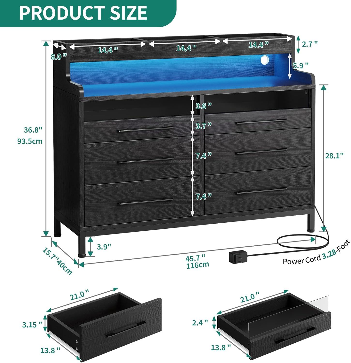 YITAHOME 6 Drawer Dressers & Chests of Drawers with LED Light, Modern Dresser with Open Shelf Storage for Room, Entryway, Hallway, Black(Black)