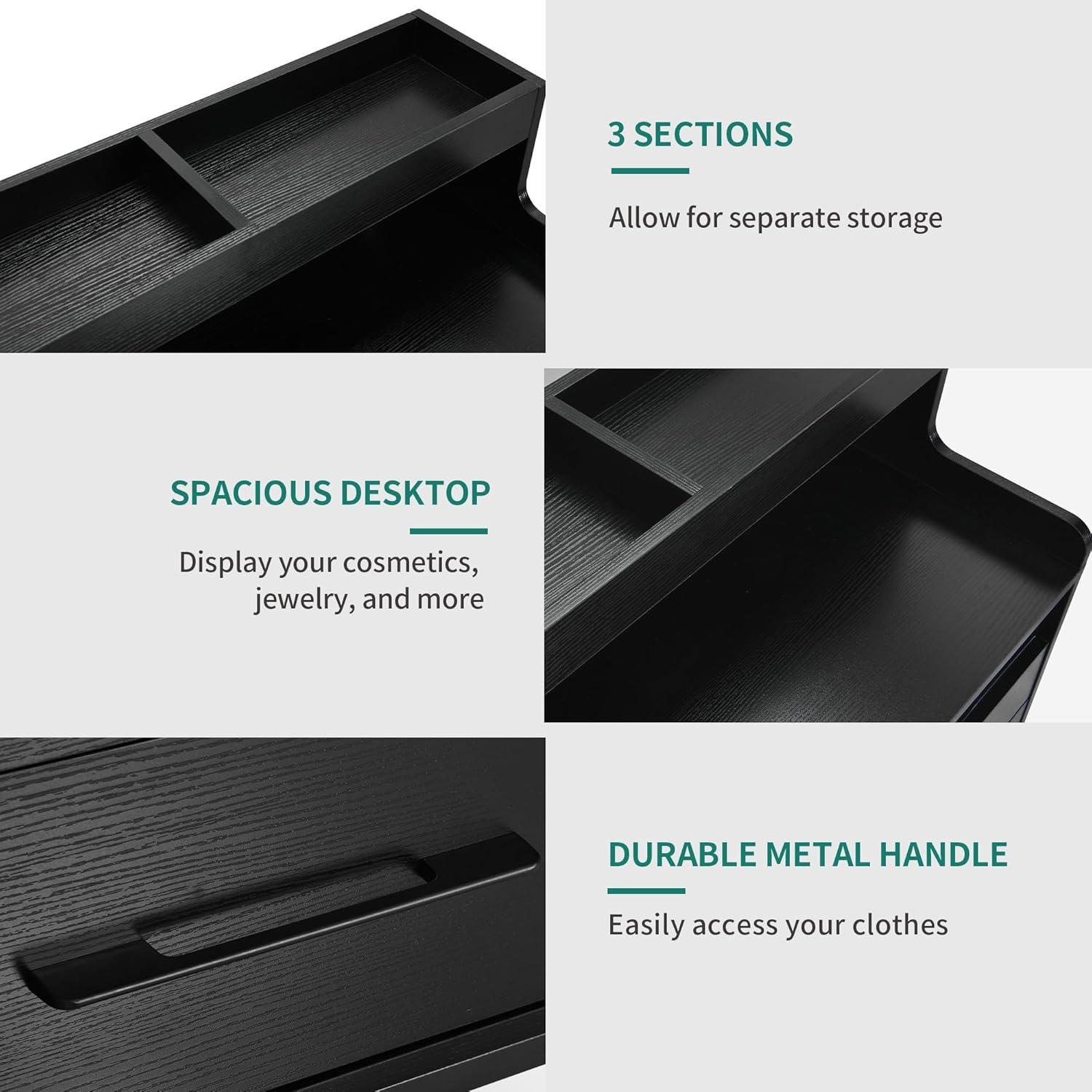 6-drawer dresser with 3 compartments: This dresser offers ample storage. Conveniently store in the spacious drawers. Display frames, cosmetics, jewelry, albums and more on the segmented tabletop