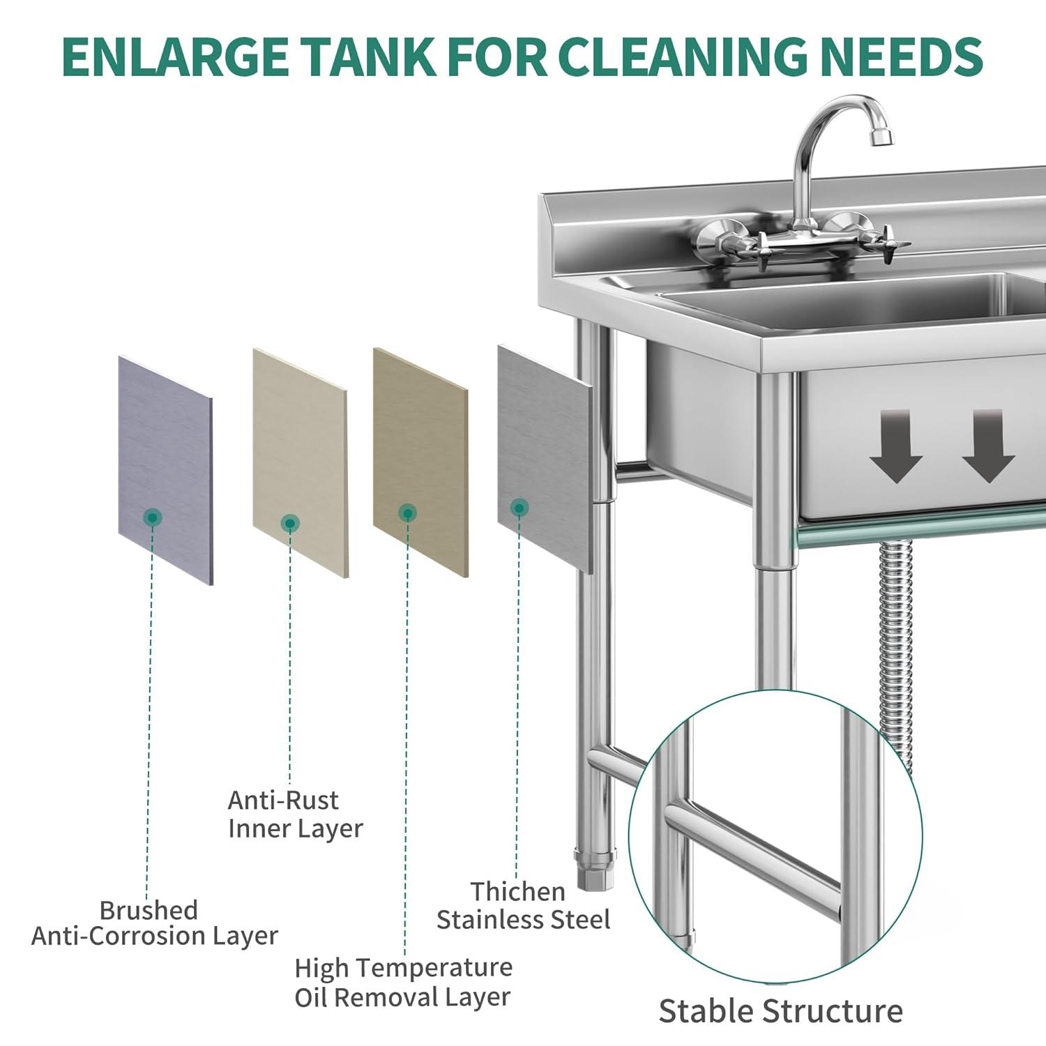 Optimized for Workflow & Drainage: Engineered for professional performance. Each compartment features a central drain for efficient water flow. The generously sized drainboards are sloped to channel water back into the sink, keeping your floors dry and your workspace organized.