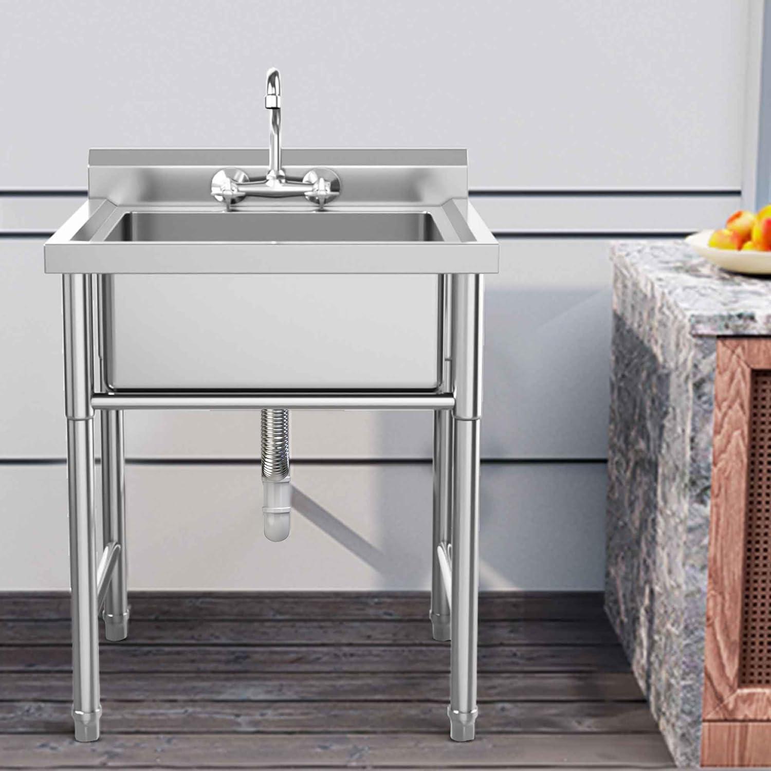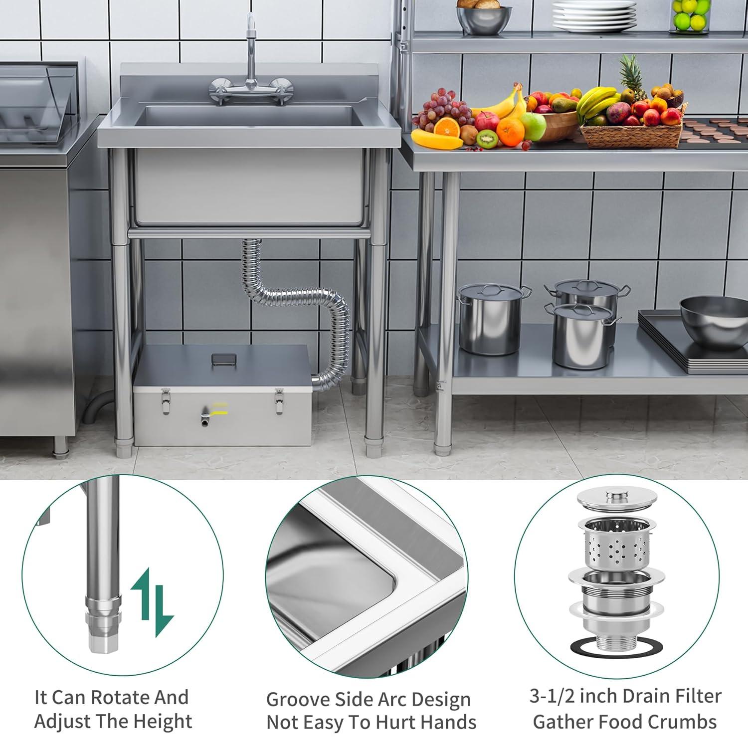 YITAHOME 60inch 3 Compartment Commercial Bar Sink with Drainboards, NSF Heavy-Duty Stainless Steel Freestanding Prep Utility Sink for Restaurant Kitchen(1-Compartment Sink)