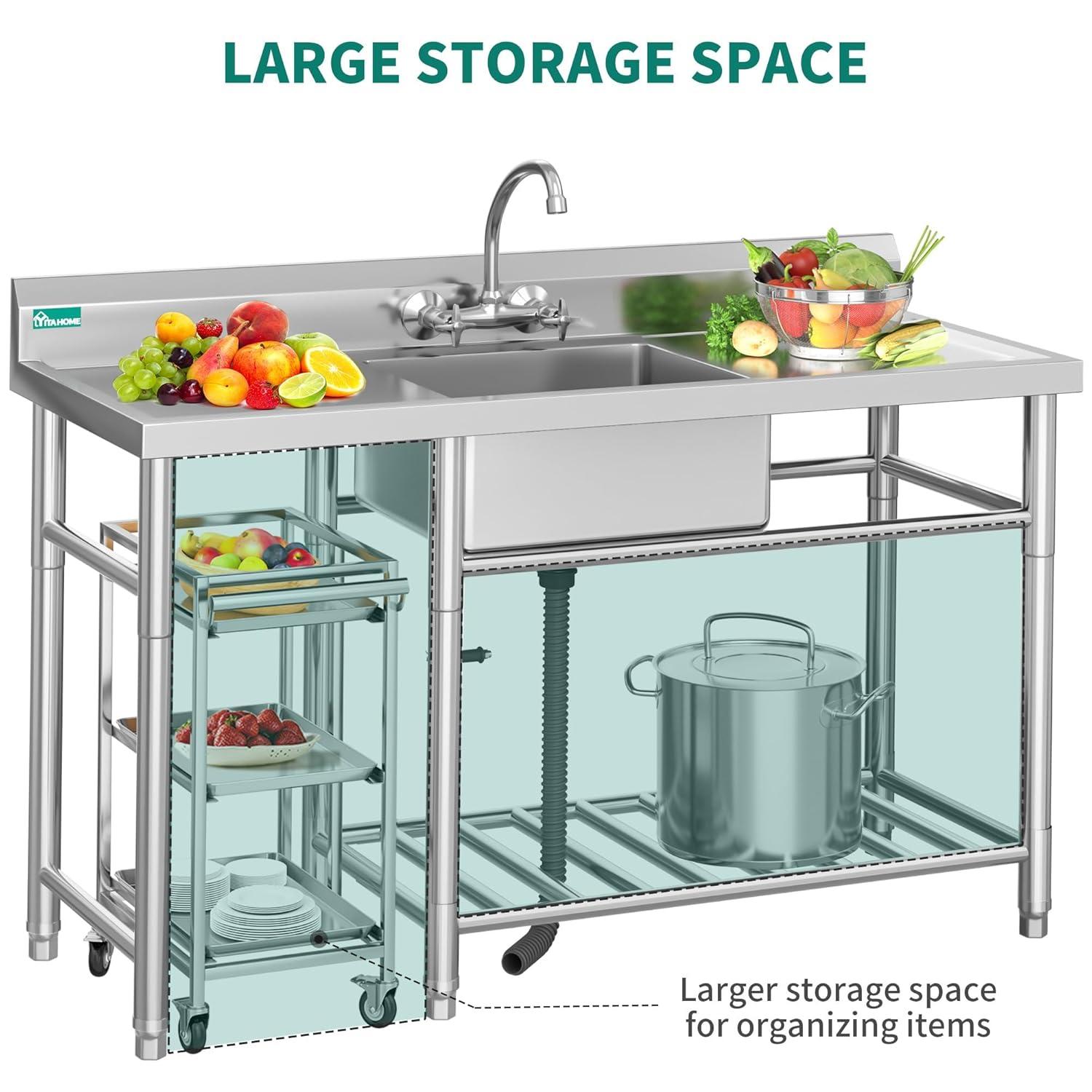 imageYITAHOME 60inch 3 Compartment Commercial Bar Sink with Drainboards NSF HeavyDuty Stainless Steel Freestanding Prep Utility Sink for Restaurant Kitchen60in 1Sink w 2 Drainboards Shelf