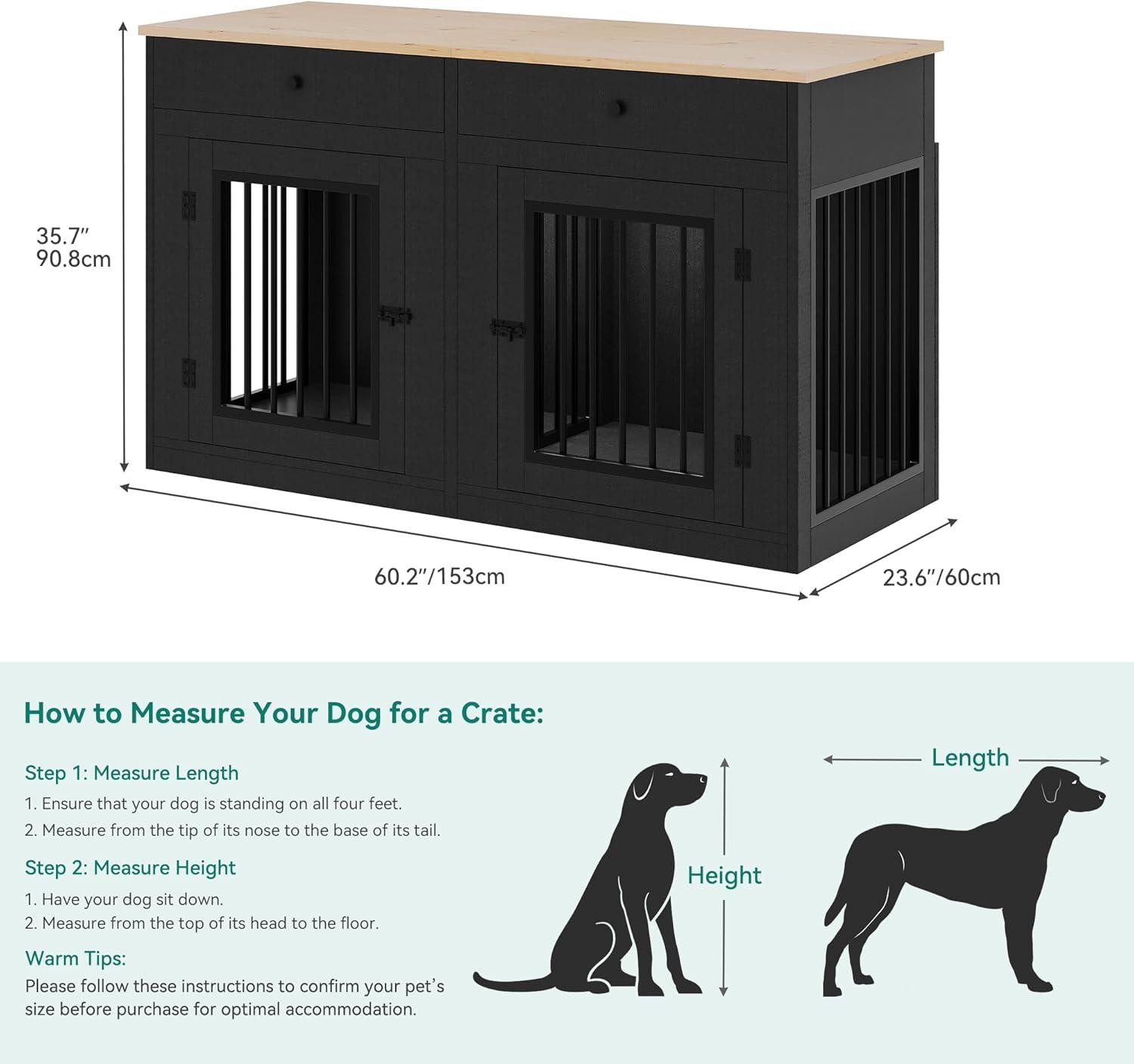 Easy Setup: This dog cage furniture includes all essentials and clear instructions for assembly. To expedite installation and ensure safety, we recommend assembling with two or more individuals for larger pieces