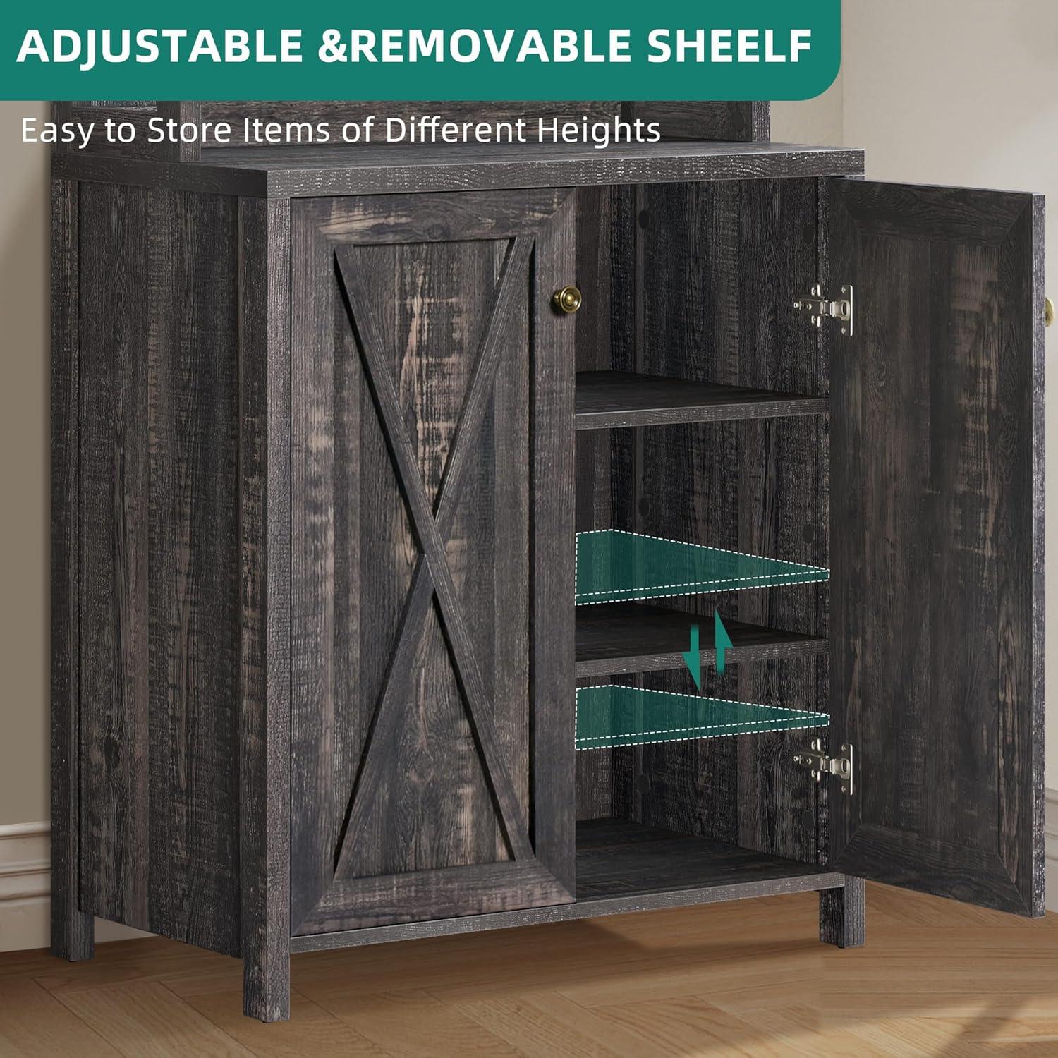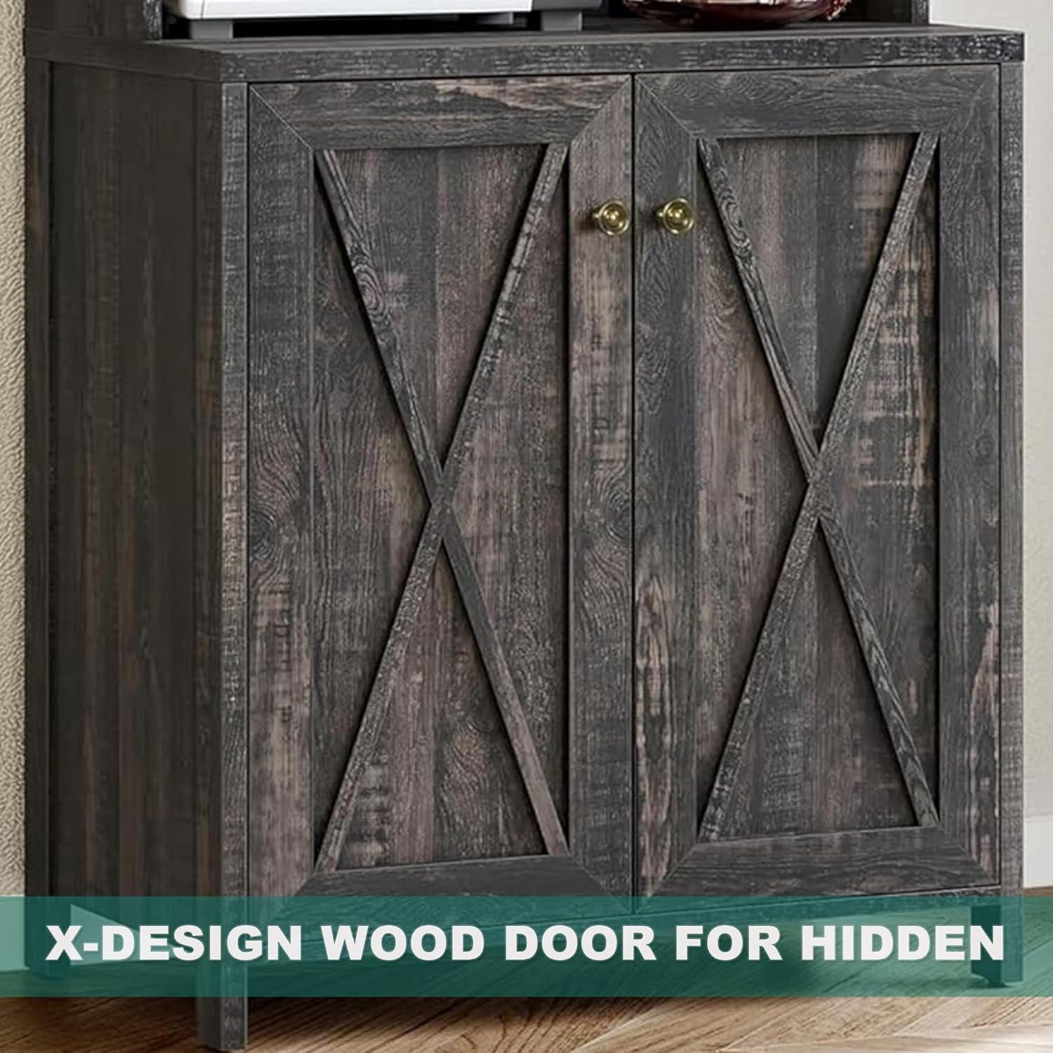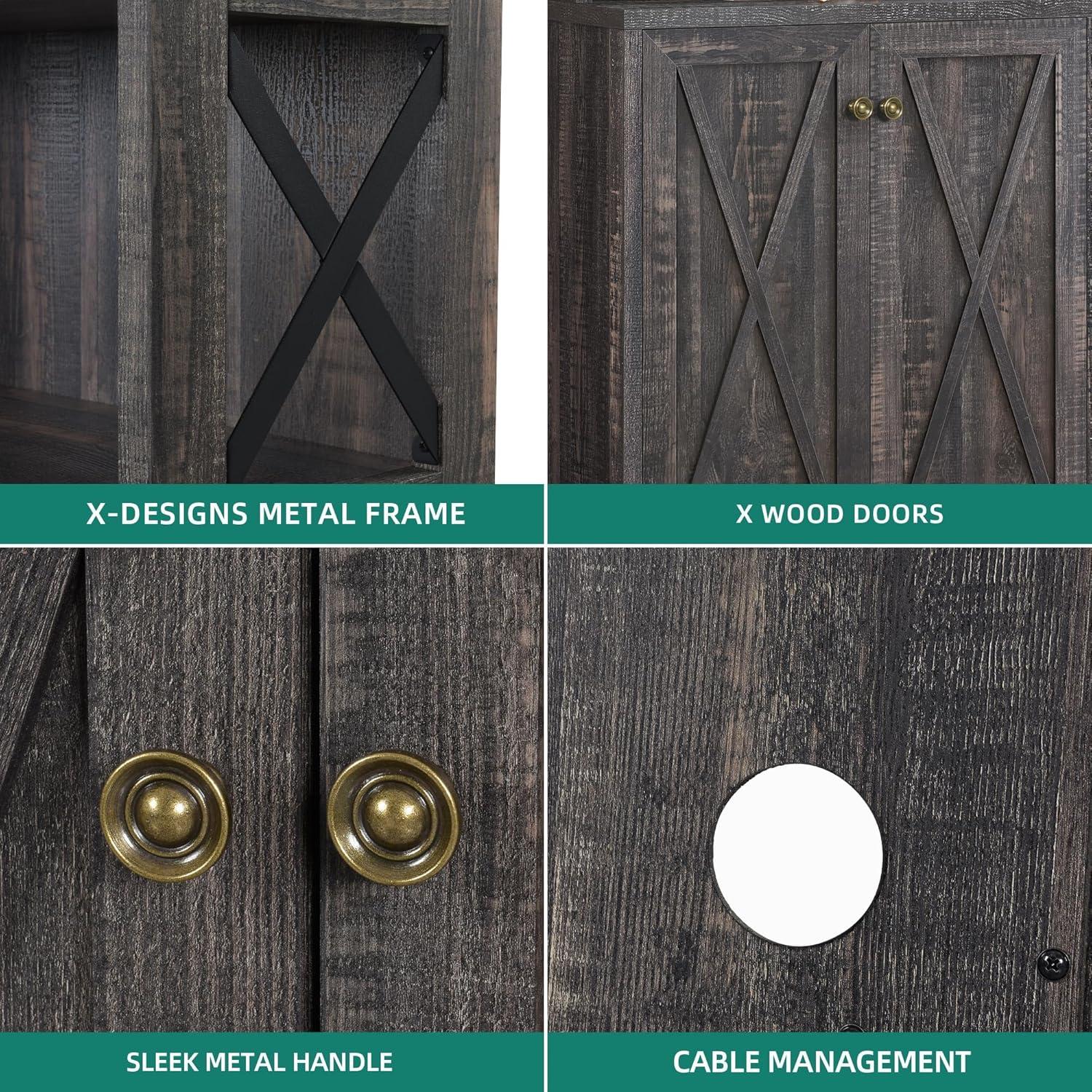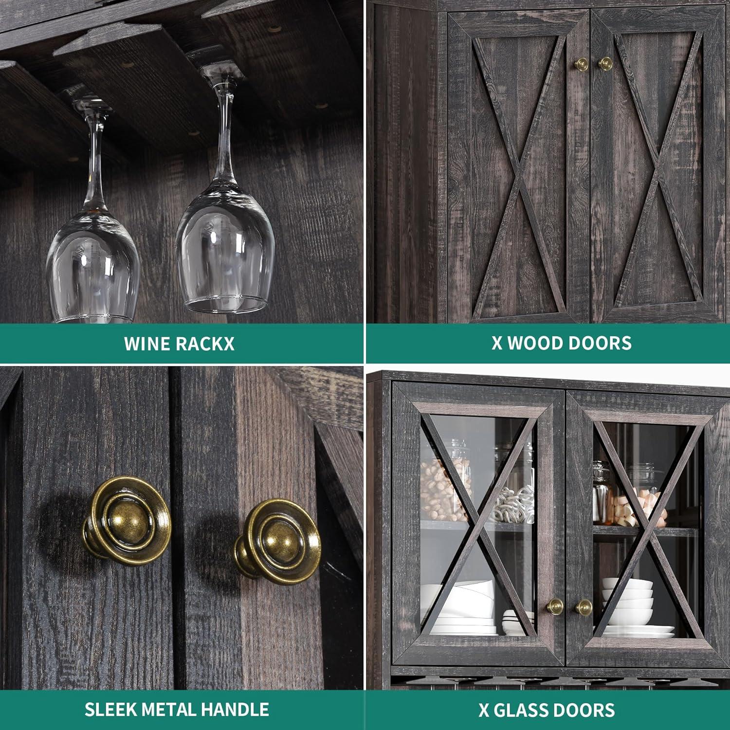Retro Industrial Design: Besides maximizing your living space, this bar cabinet with a rustic dark gray finish, round industrial metal handle and upper glass door, which add an rustic style to your home. Stylish X pattern makes your room full of farmhouse and innovative beauty.