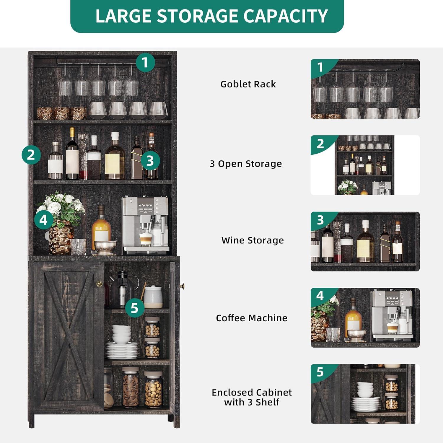 Multi-Purpose: Featuring an exquisite mix of open storage shelves and cabinet with hidden 3-tier shelves, our YITAHOME tall bar cabinet functions as home bar, microwave stand, buffet, sideboard, coffee station, etc, meeting your various storage needs of kitchen, pantry, dining room, living room or bar.
