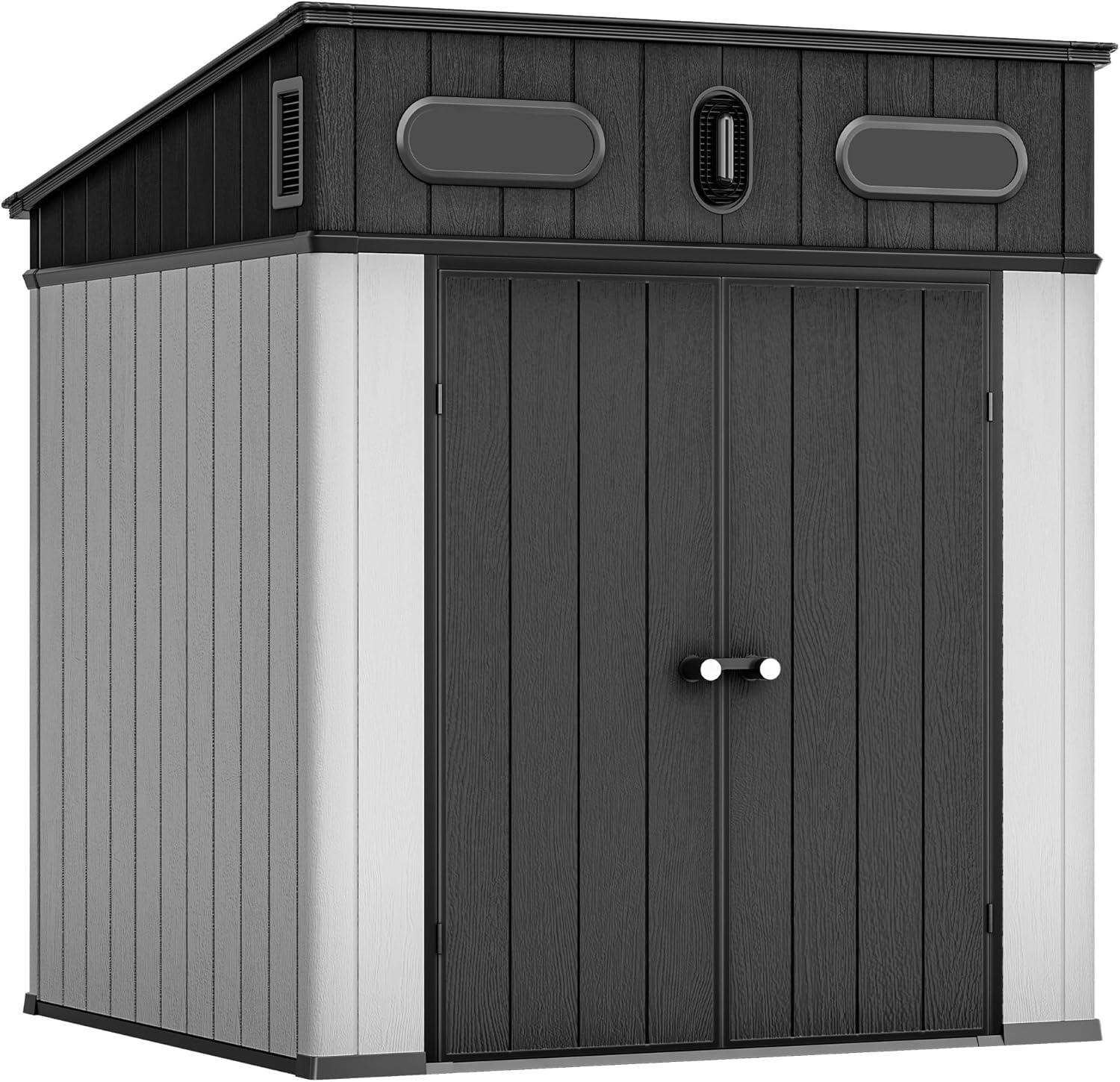 Durable Construction: Our 6×6 ft outdoor storage shed is crafted from sturdy resin to resist rain, rust, and UV rays, so you can enjoy peace of mind with long-lasting stability