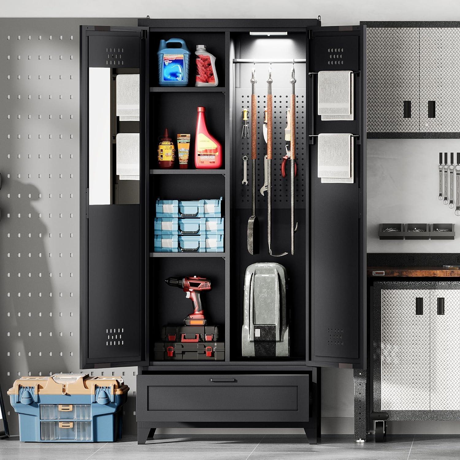 Durable Steel Construction: Built to last, this steel metal storage cabinet is sturdier than wood or plastic alternatives. It comes with a tip-resistant kit for added safety, keeping the storage cabinet secure, and adjustable feet ensure stability, even in active households with pets