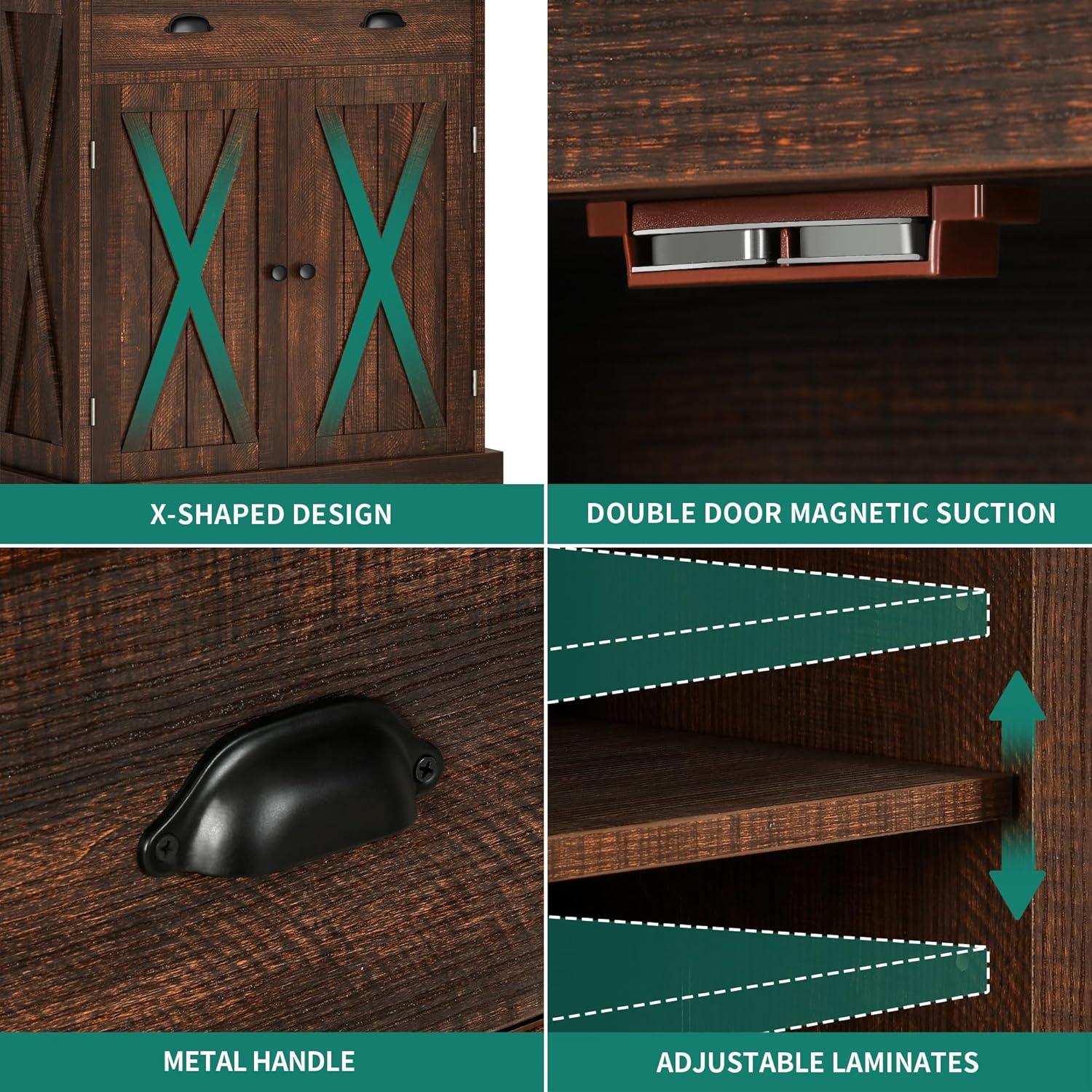Multipurpose Pantry Cabinet: Adorned with barn doors and enriched by distressed off-white finish, the cabinet emanates a timeless appeal. Our pantry storage cabinet with an X-shaped barn door design, antique metal handles and exquisite wood grain, make it adds rich farmhouse style, suitable for for kitchen, living room, hallway or dining room etc.