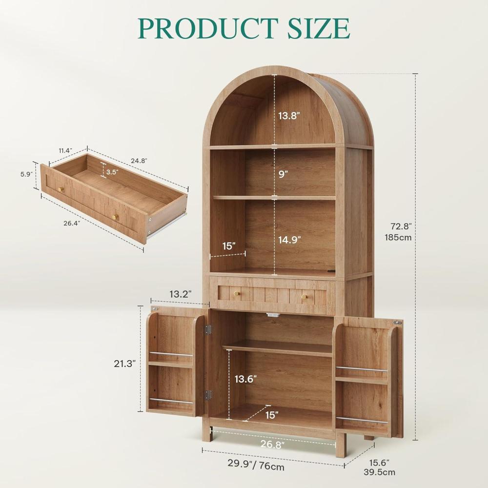 Elegant Arched Pantry Cabinet: Transform your kitchen with our beautiful arched pantry cabinet, made from tough engineered wood. It combines stylish storage with elegance and includes non-tipping kits to prevent wobbling or tipping for enhanced stability