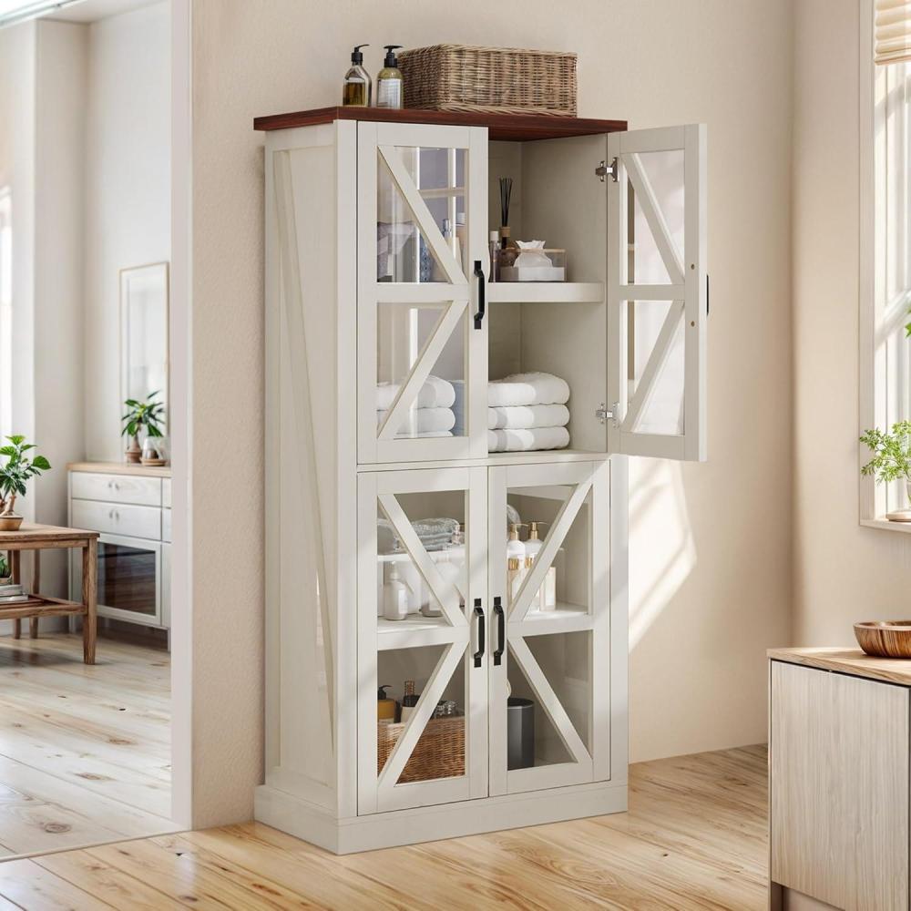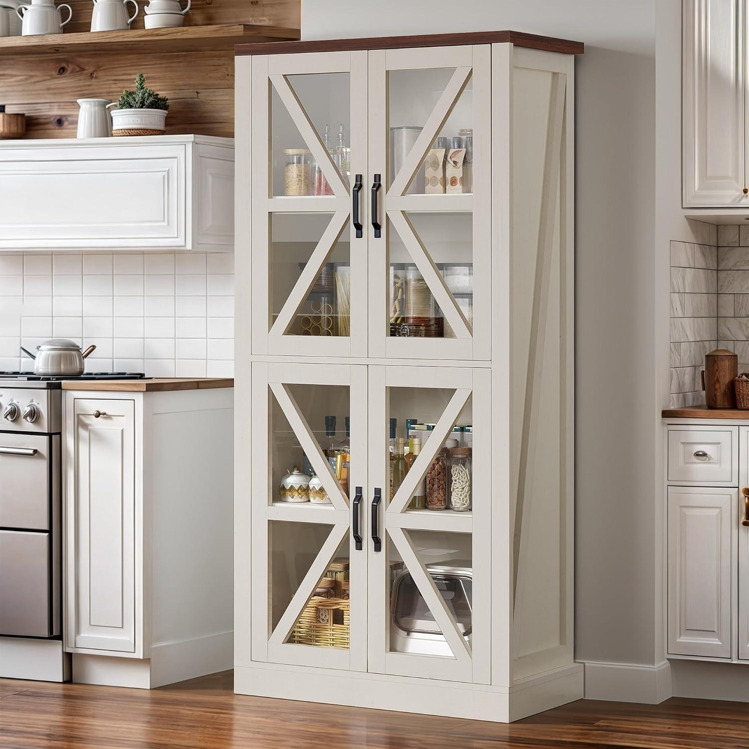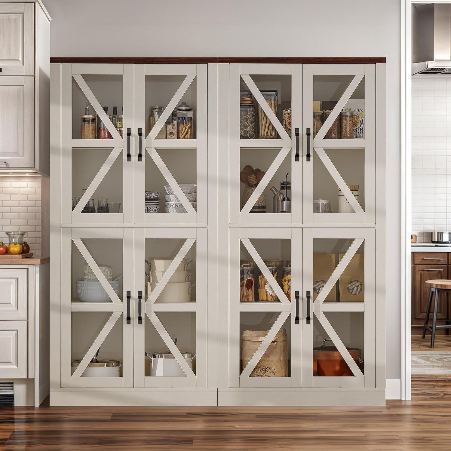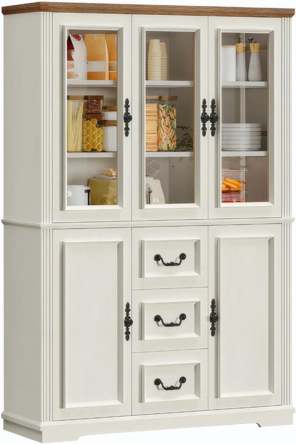 Farmhouse Appeal & Versatile Functionality: It features rustic vintage handles, textured details, and glass doors for a warm farmhouse look. Glass doors bring a modern touch, allowing you to spot items instantly while enhancing your kitchen's aesthetic