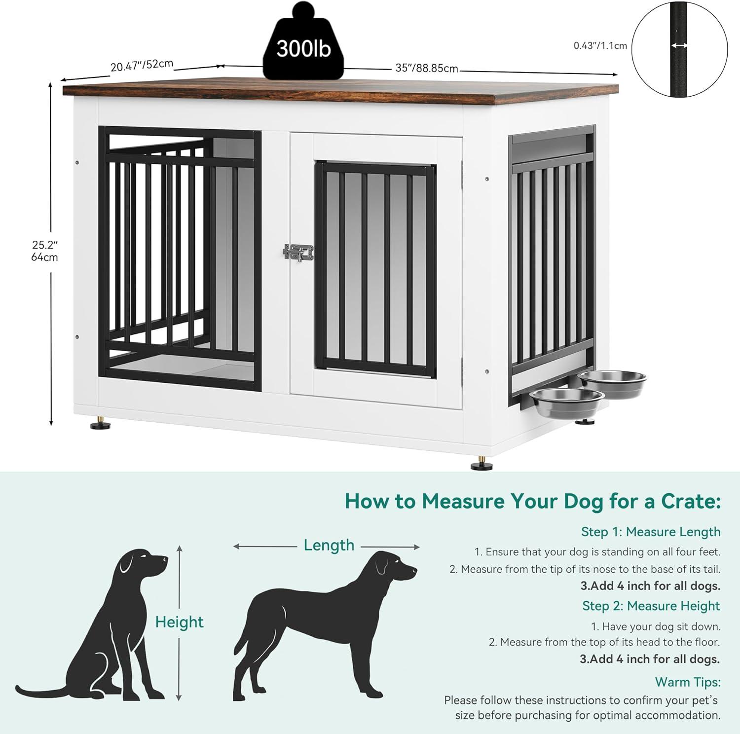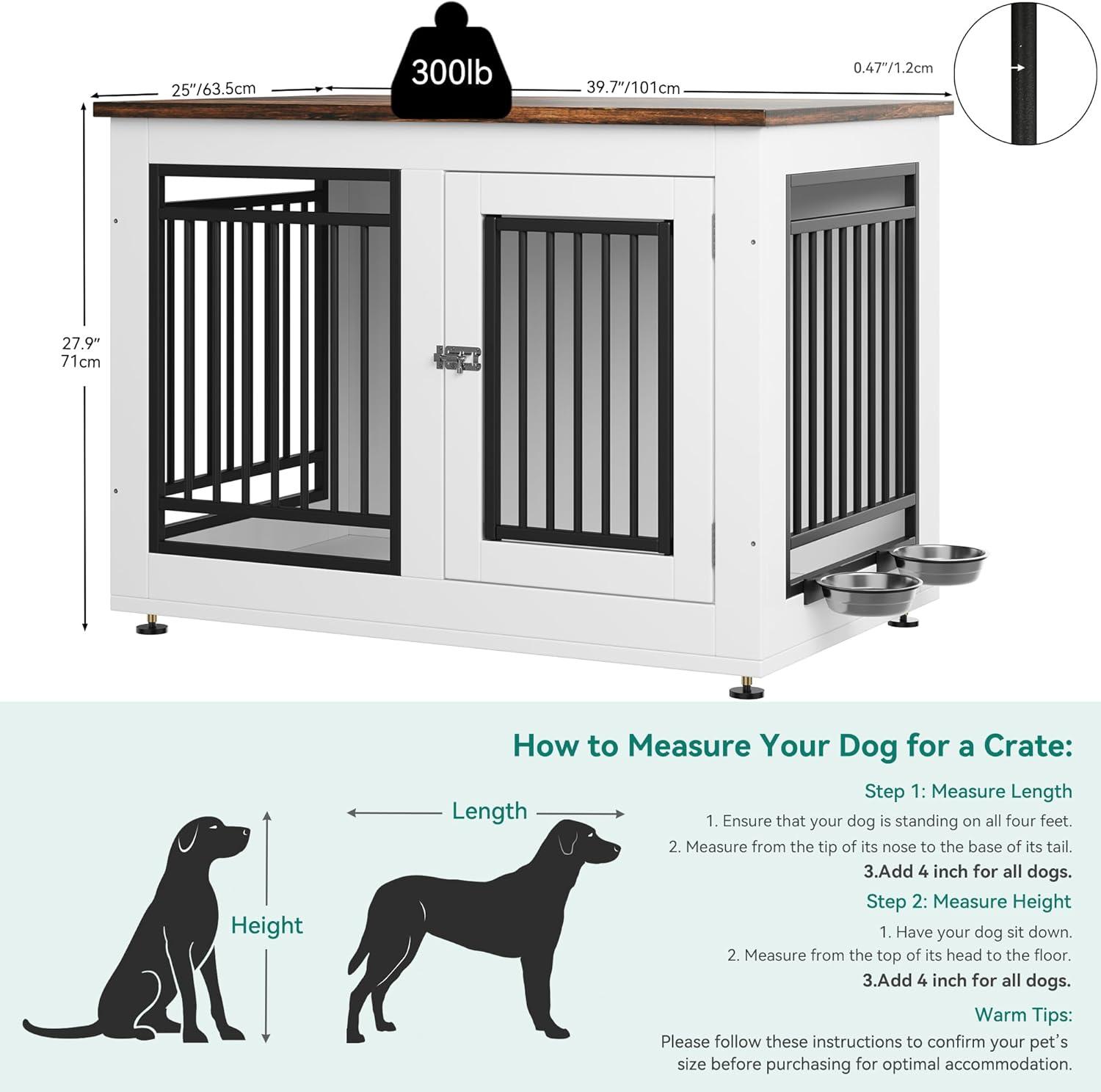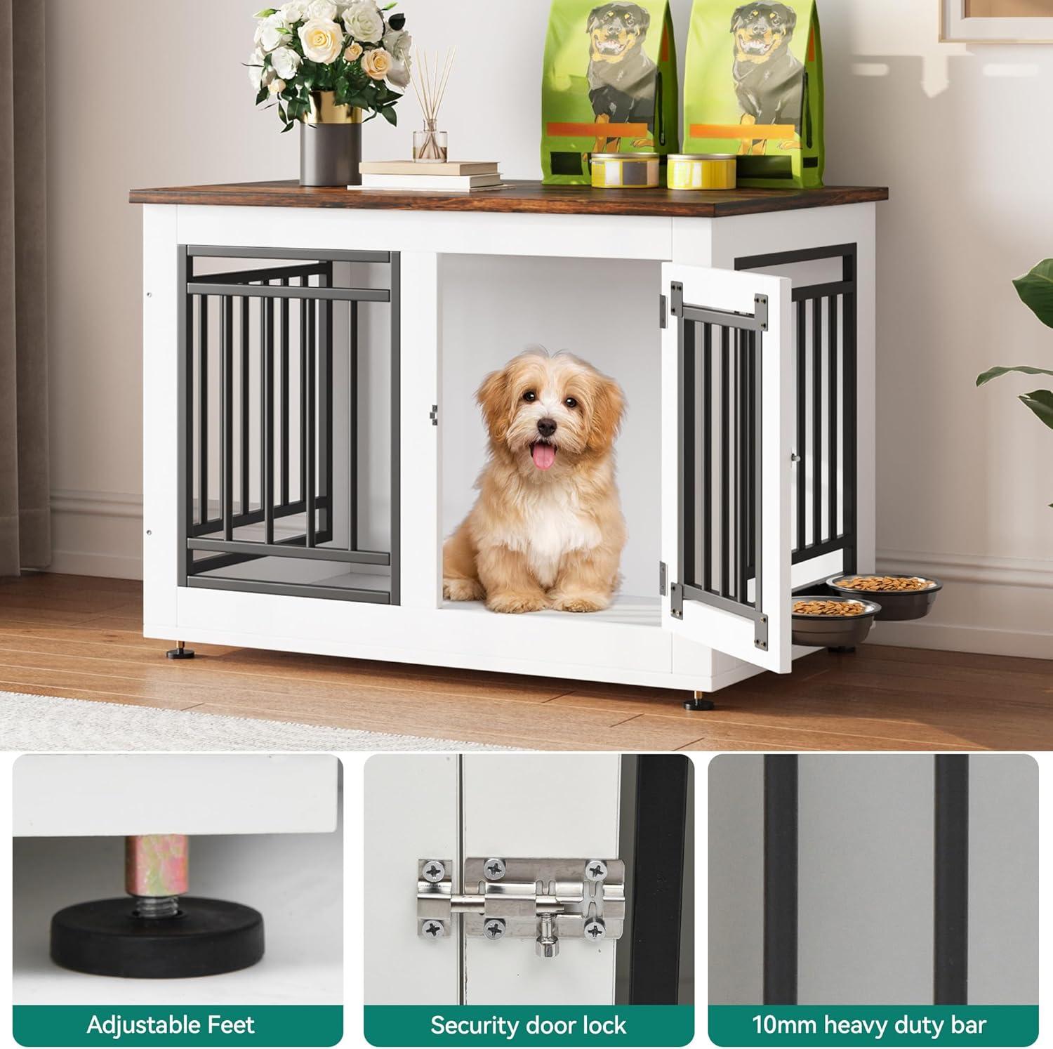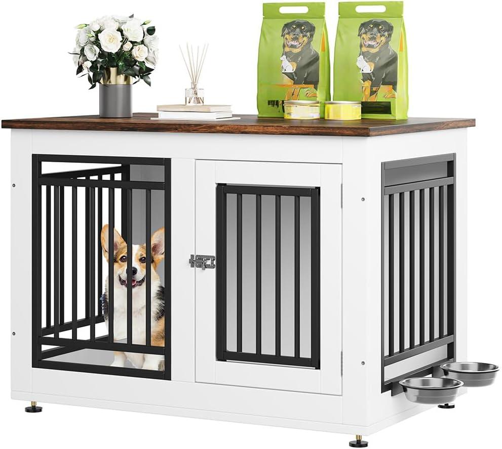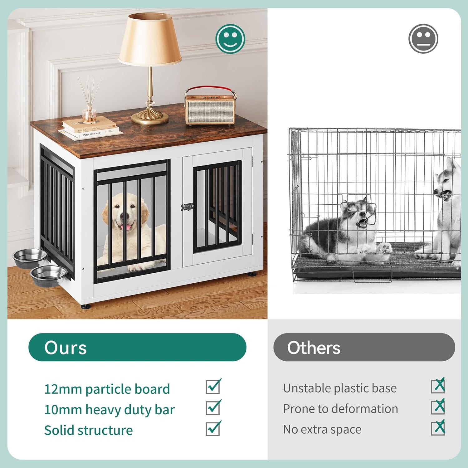 Decorative Dog Crate with Bowls: This large dog kennel is equipped with 2 360° rotatable stainless steel bowls, providing a comfortable resting space for your pet, the dog kennel can also be used as a TV stand and side table to save space. The color scheme is ideal for modern furniture and the spacious desktop provides additional storage space for pet supplies