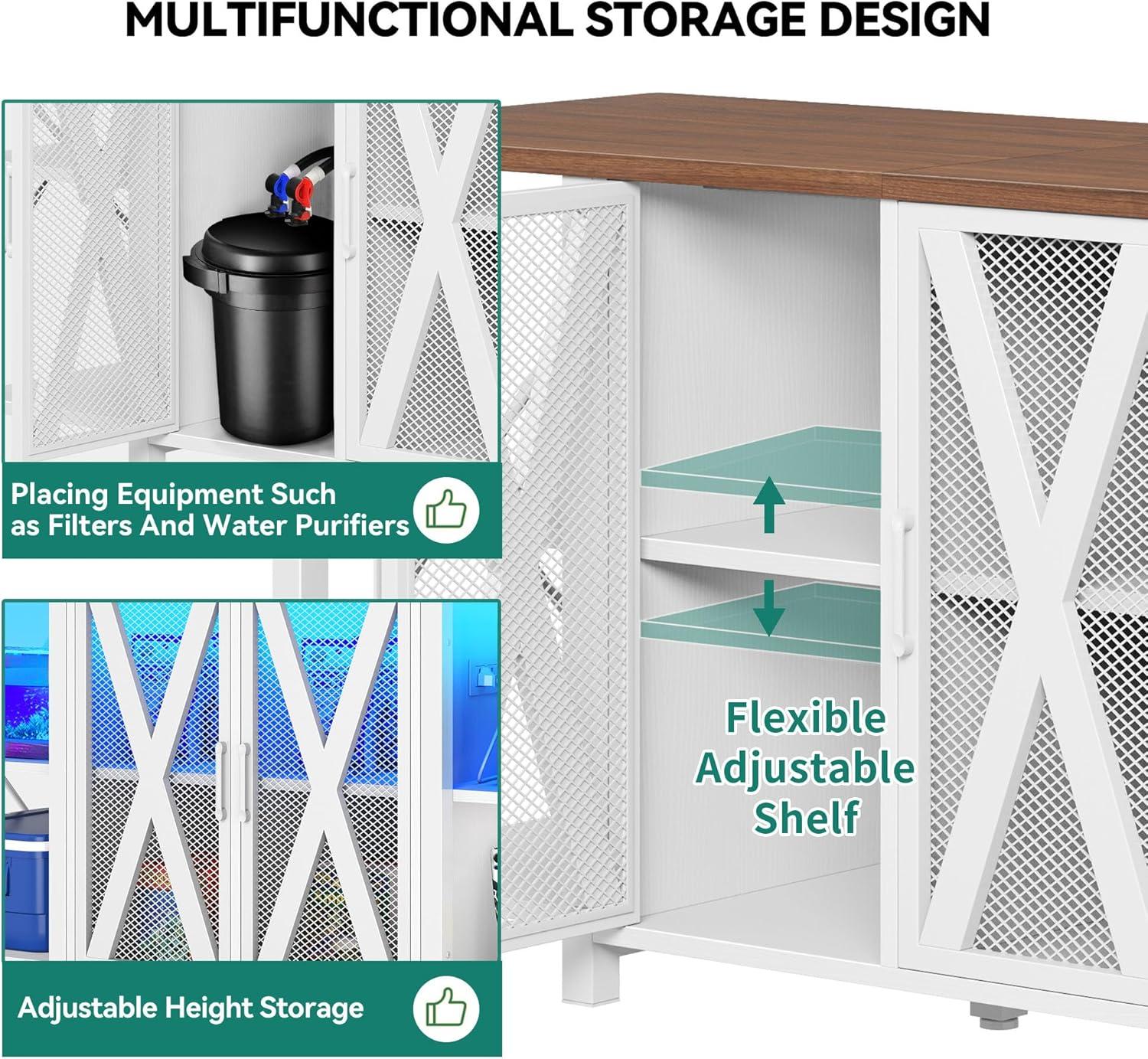 Multi-Functional Storage: Maintain order with our fish tank with stand features for fish food, tools, and accessories. Adjustable shelves cater to items of all sizes, keeping your aquarium essentials in one place