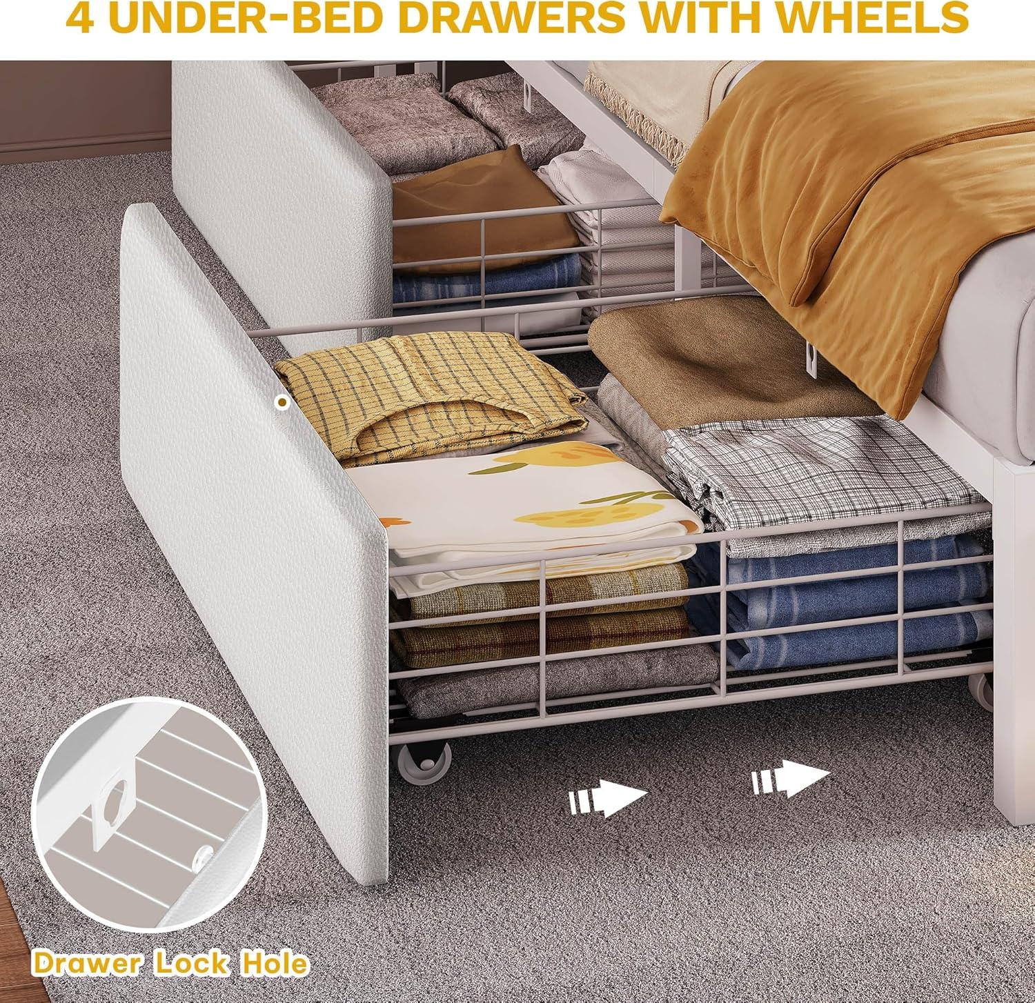 Twin Size Platform Bed with Trundle – This twin bed features pop-up wheels with lock wheels, allowing you to easily convert it into two single beds. It is per-fect for siblings and overnight guests. Such a multi-purpose piece brings a versatile style to your home and has per-fect space-saving features.