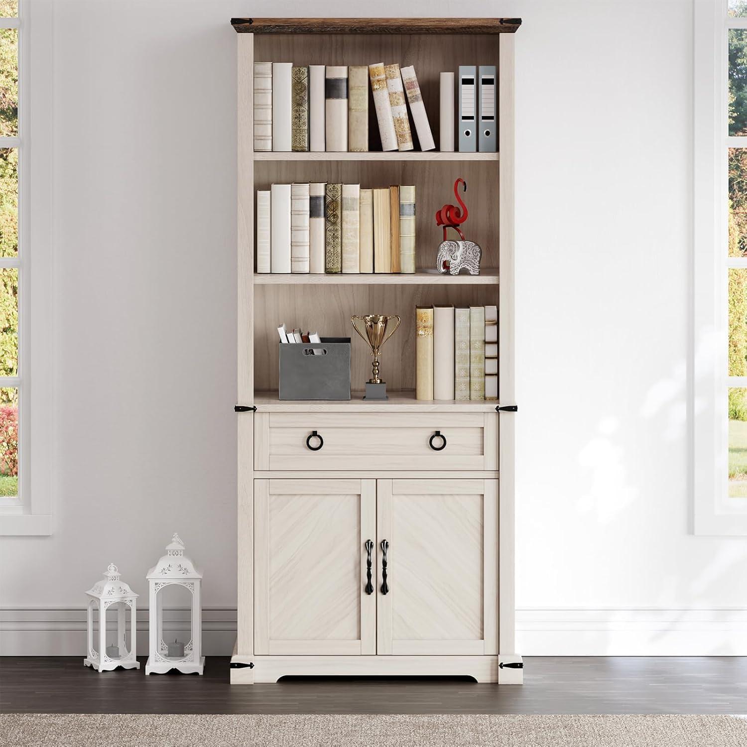 YITAHOME Bookcase with Drawers, 71″ Tall Bookshelf with Storage & Adjustable Shelves, Wood Display Book Shelf Organizer with 3 File Drawers for Living Room, Bedroom, Home Office, White(White)