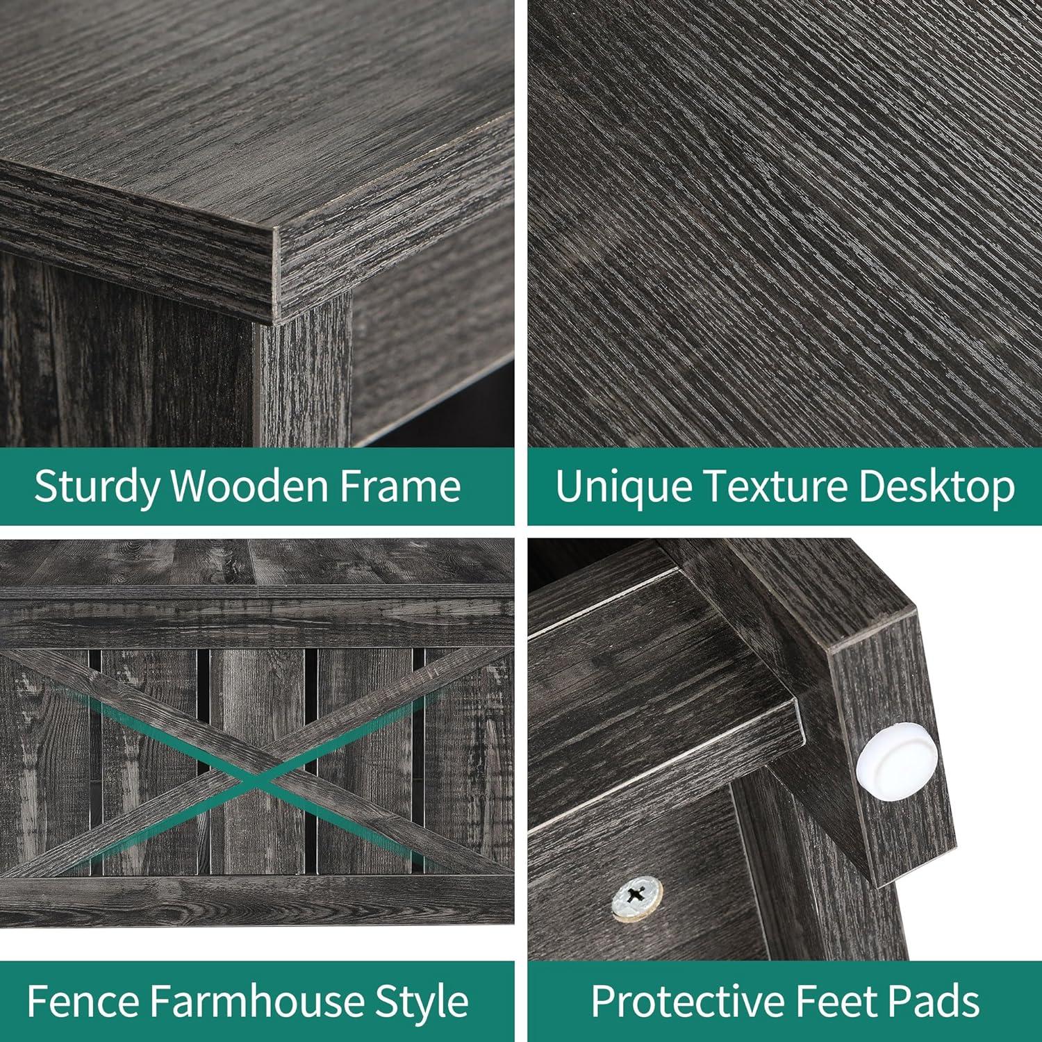 STURDY AND PRACTICAL CONSTRUCTION- The grey coffee table is made of particle boards and can hold up to 180 lbs, featuring strong weight capacity; the “X” design frame on both sides increases the sturdiness and brings more farm flair; the adjustable feet protect your floor from scratches, allowing you to decorate anywhere in the room