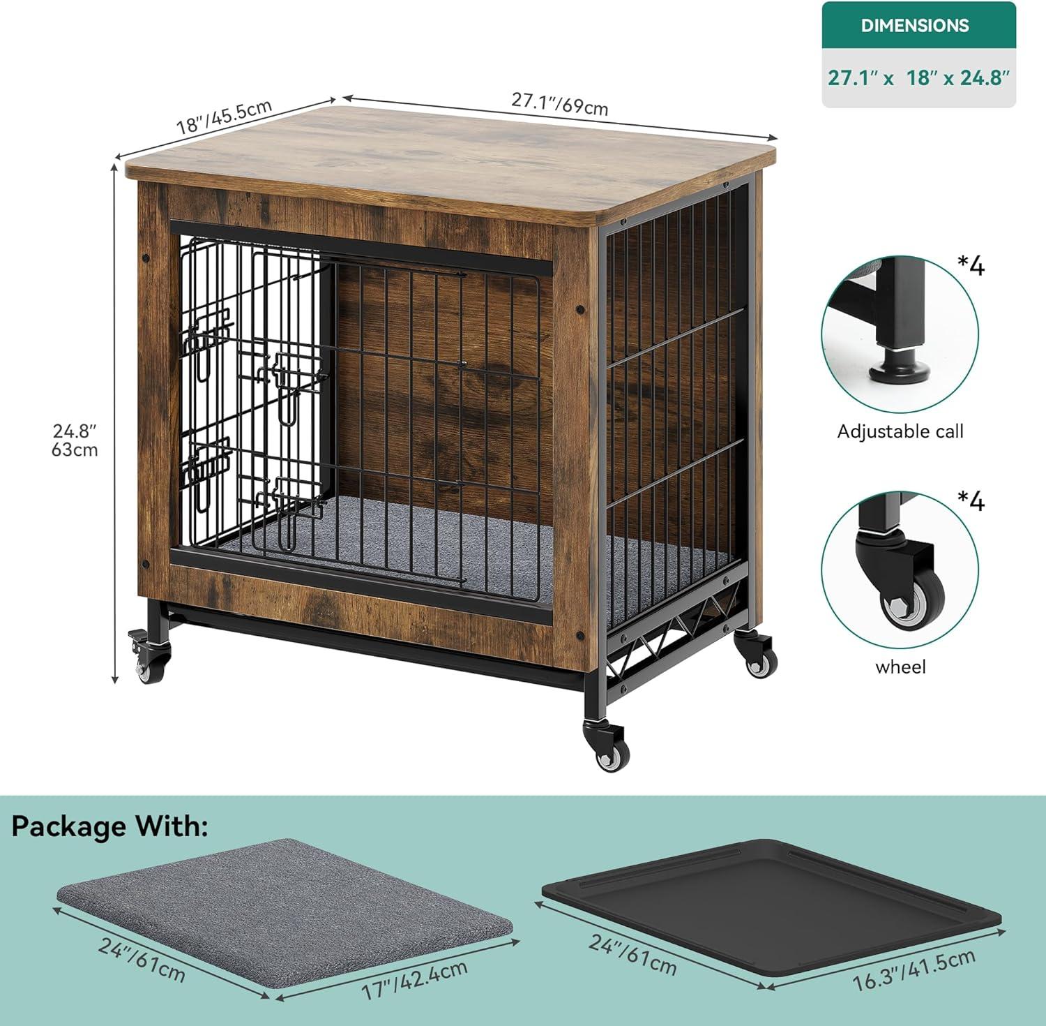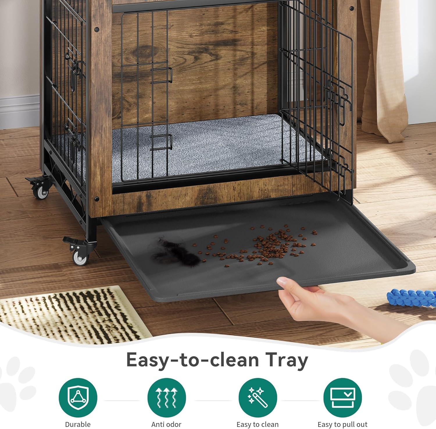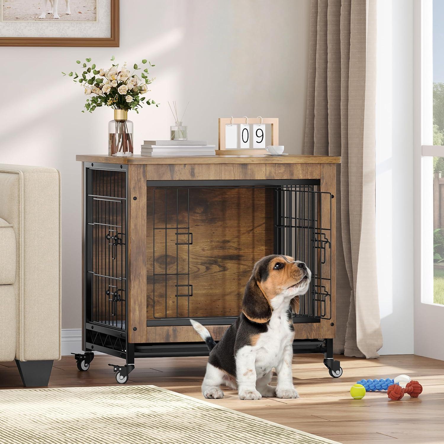 Sturdy & Durable: Our wooden dog crate furniture is constructed with sturdy wire mesh and durable, compressed wood which achieves outstanding ventilation and a longer lifespan compared to traditional dog crates; The metal lock design and safety latch prevent your pet from escaping when you're not around