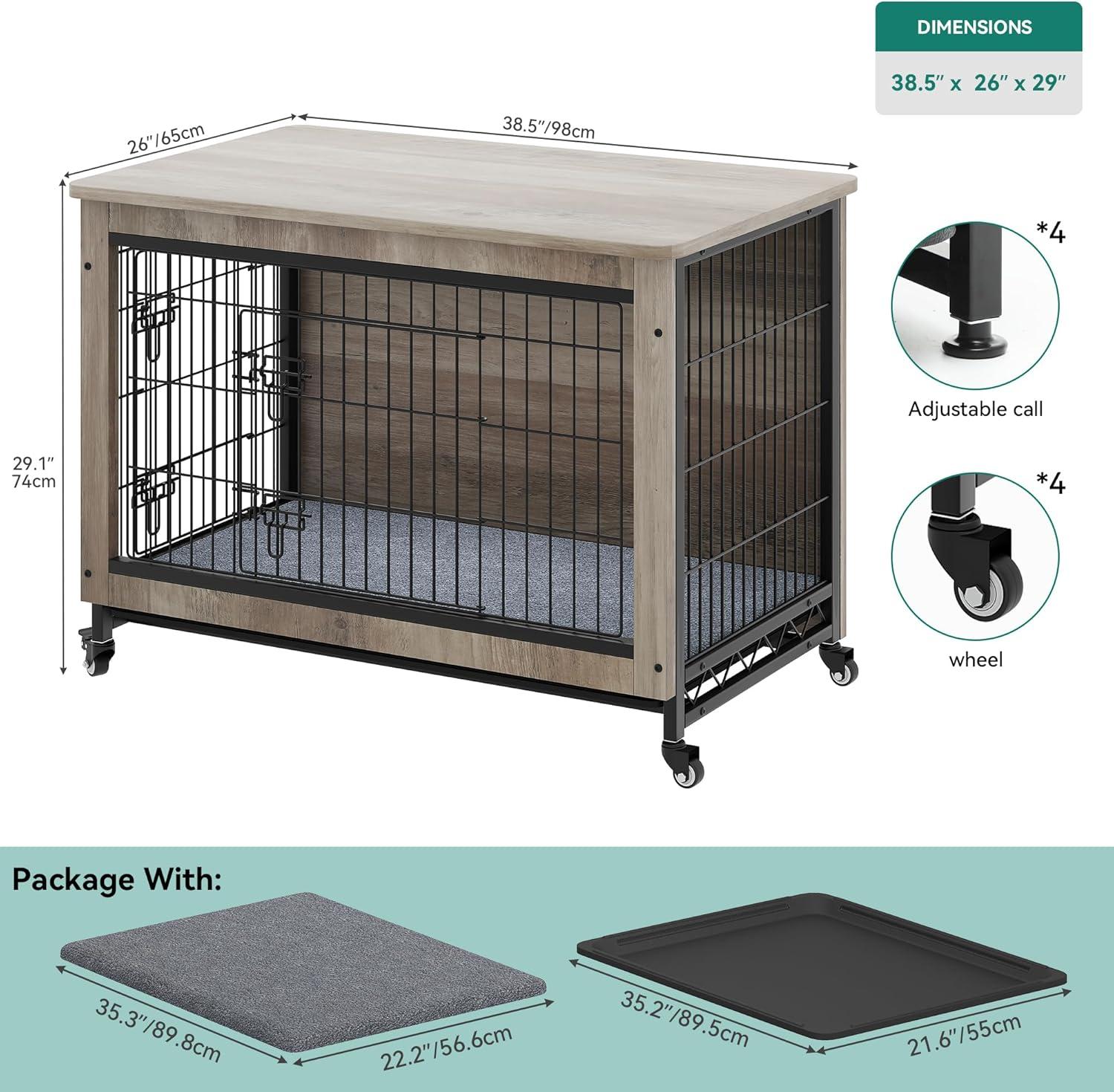 Sturdy & Durable: Our wooden dog crate furniture is constructed with sturdy wire mesh and durable, compressed wood which achieves outstanding ventilation and a longer lifespan compared to traditional dog crates; The metal lock design and safety latch prevent your pet from escaping when you're not around