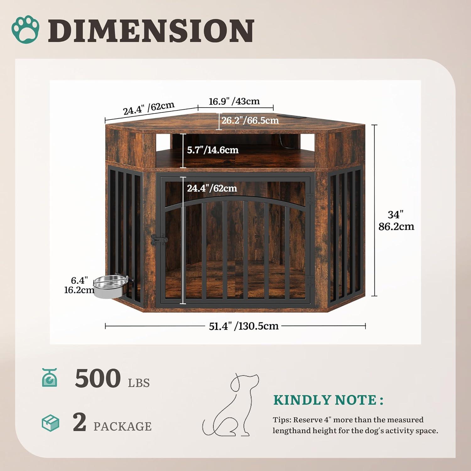 Versatile Dog Kennel Furniture: This multipurpose dog crate doubles as a coffee table, corner table, or TV stand. The spacious top surface can hold up to 220 lbs, ideal for displaying your favorite decorations and adding charm to any room