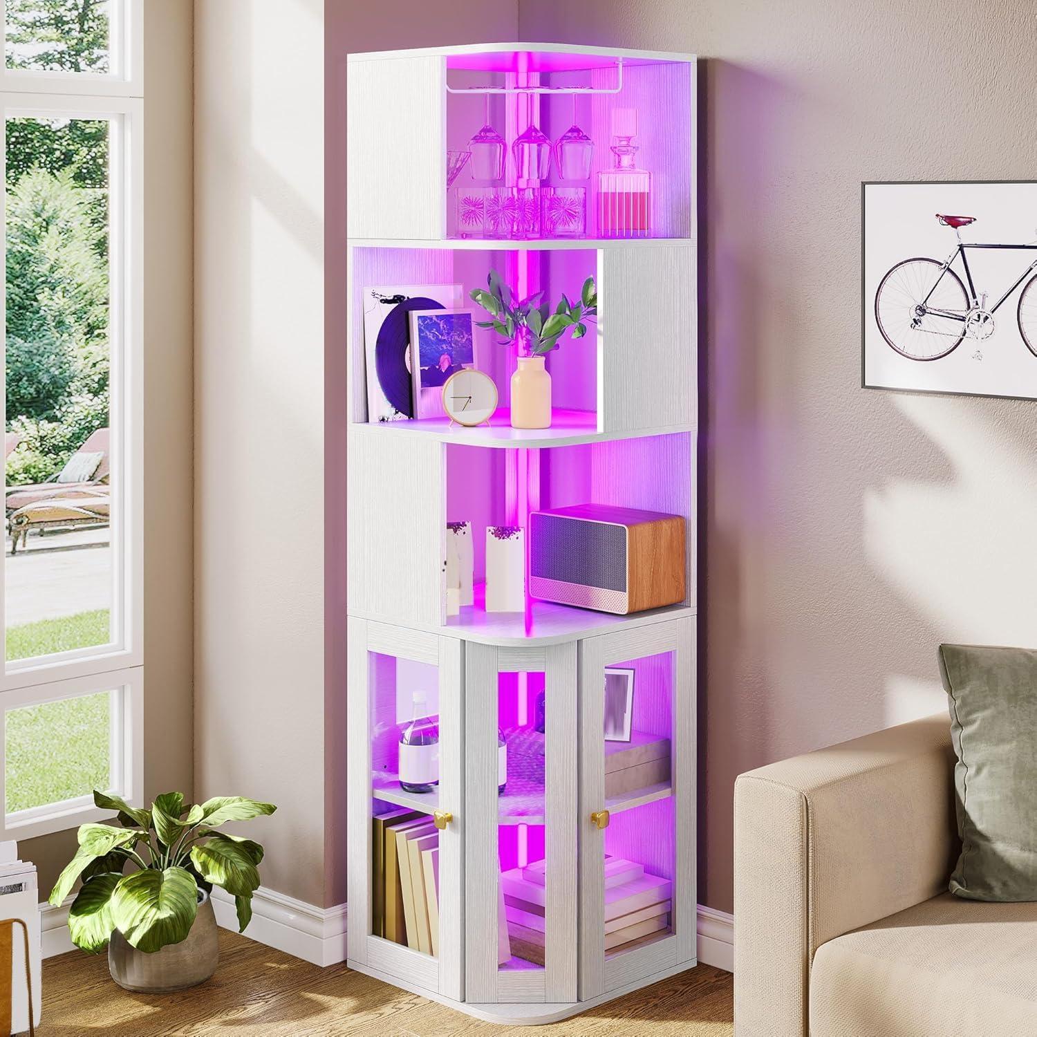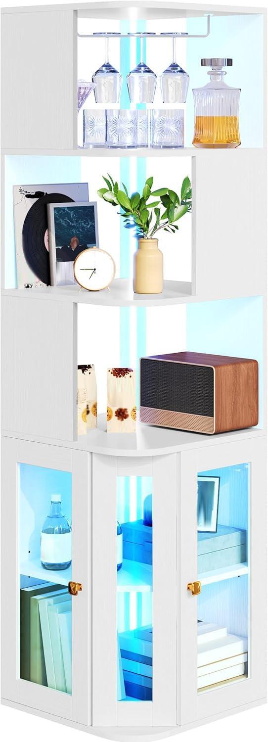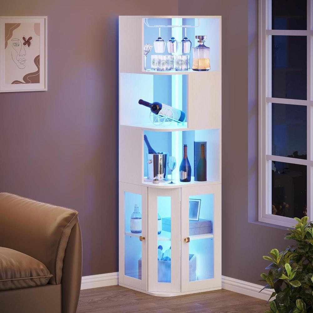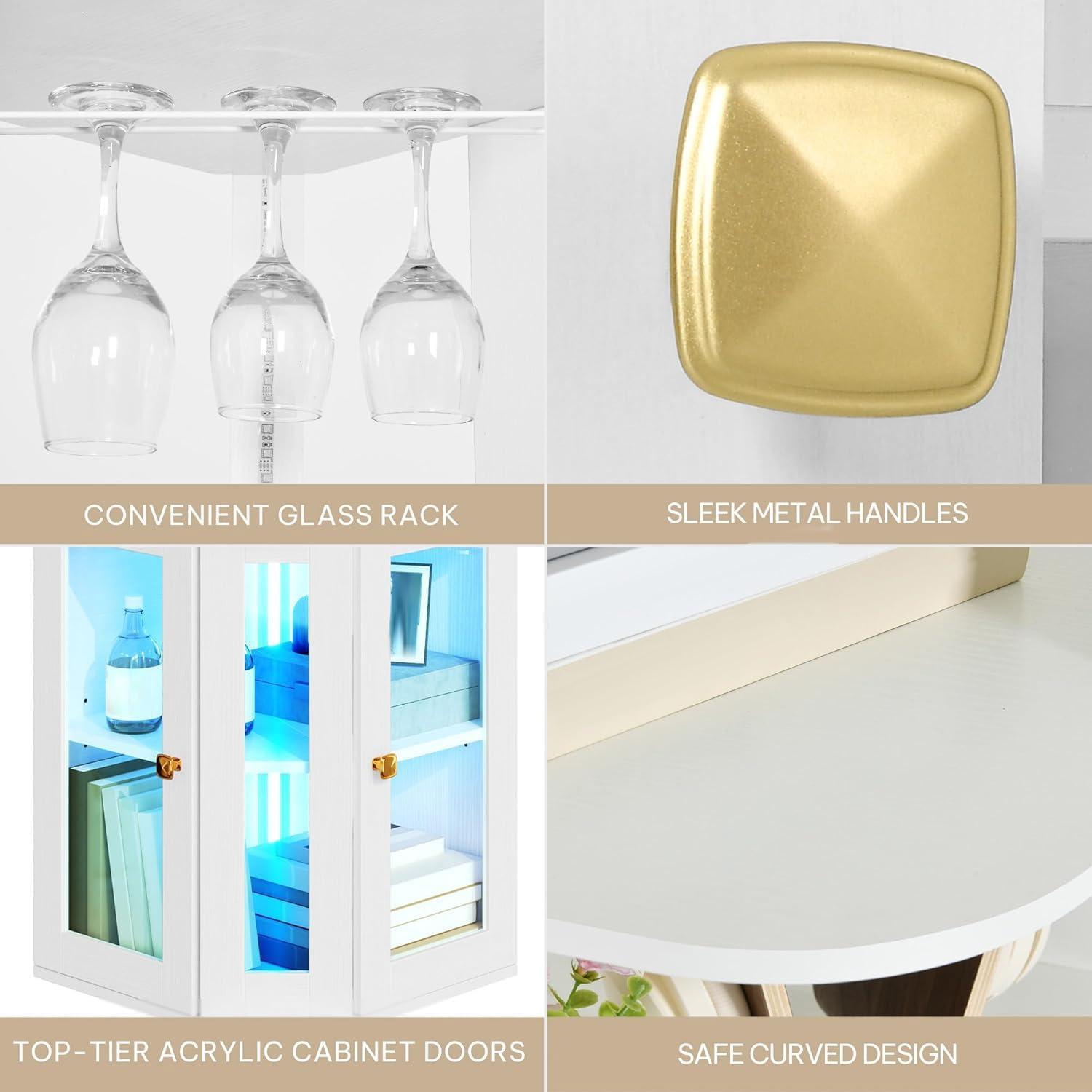 YITAHOME Corner Wine Cabinet with LED Lights & Glass Holder, Corner Bar Cabinet with Tempered Glass Door & Adjustable Shelves, Liquor Bar Rack Cabinet for Living Room, Dining Room, Kitchen, Black(White)