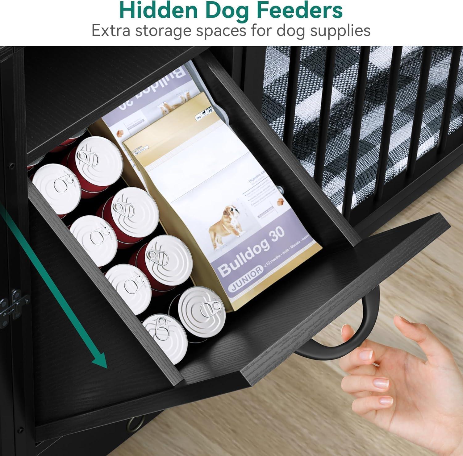 Pull Out Dog Bowls: The bottom drawer comes with double stainless steel food bowls that can be pulled out when feeding and can also be hidden to save space. The diameter of the Bowl is 7.3 inch, big enogh even for large dogs