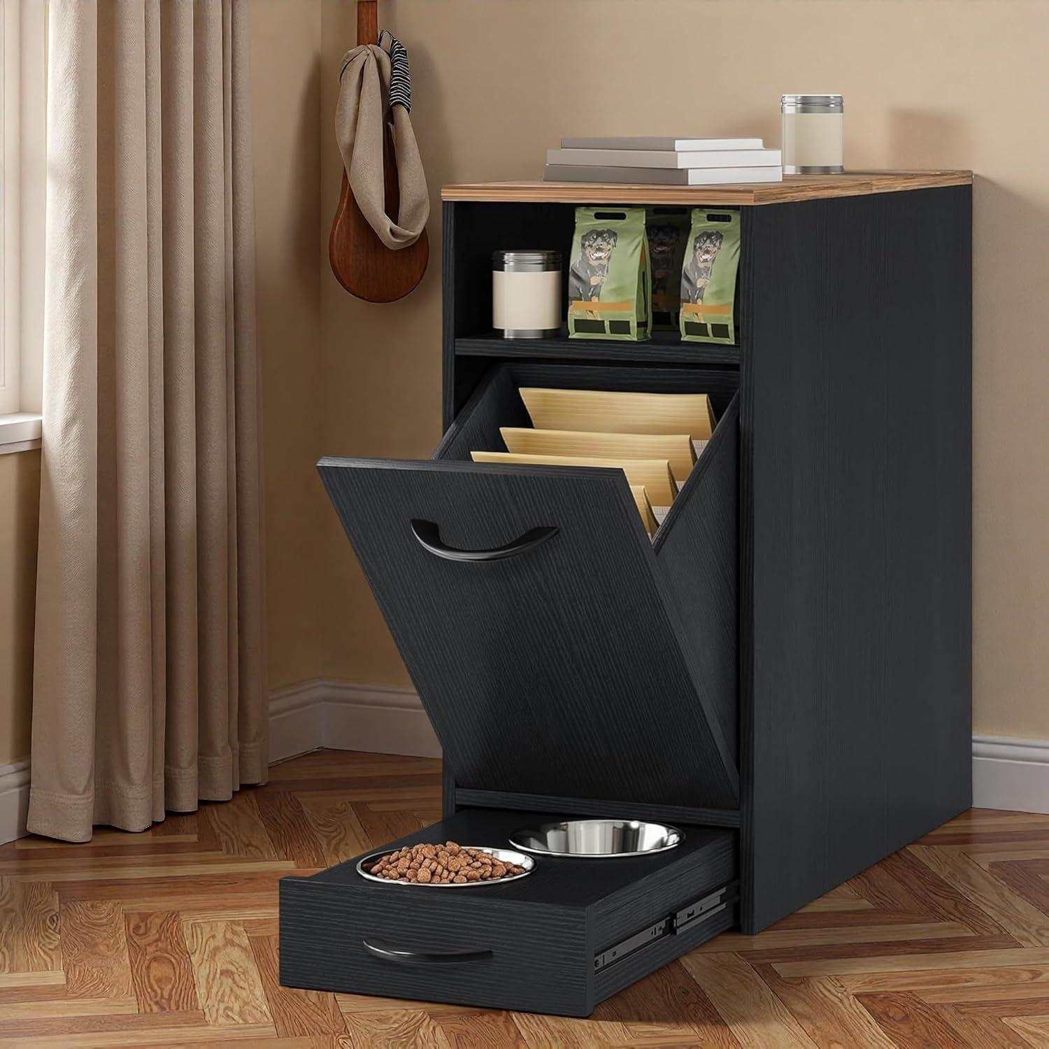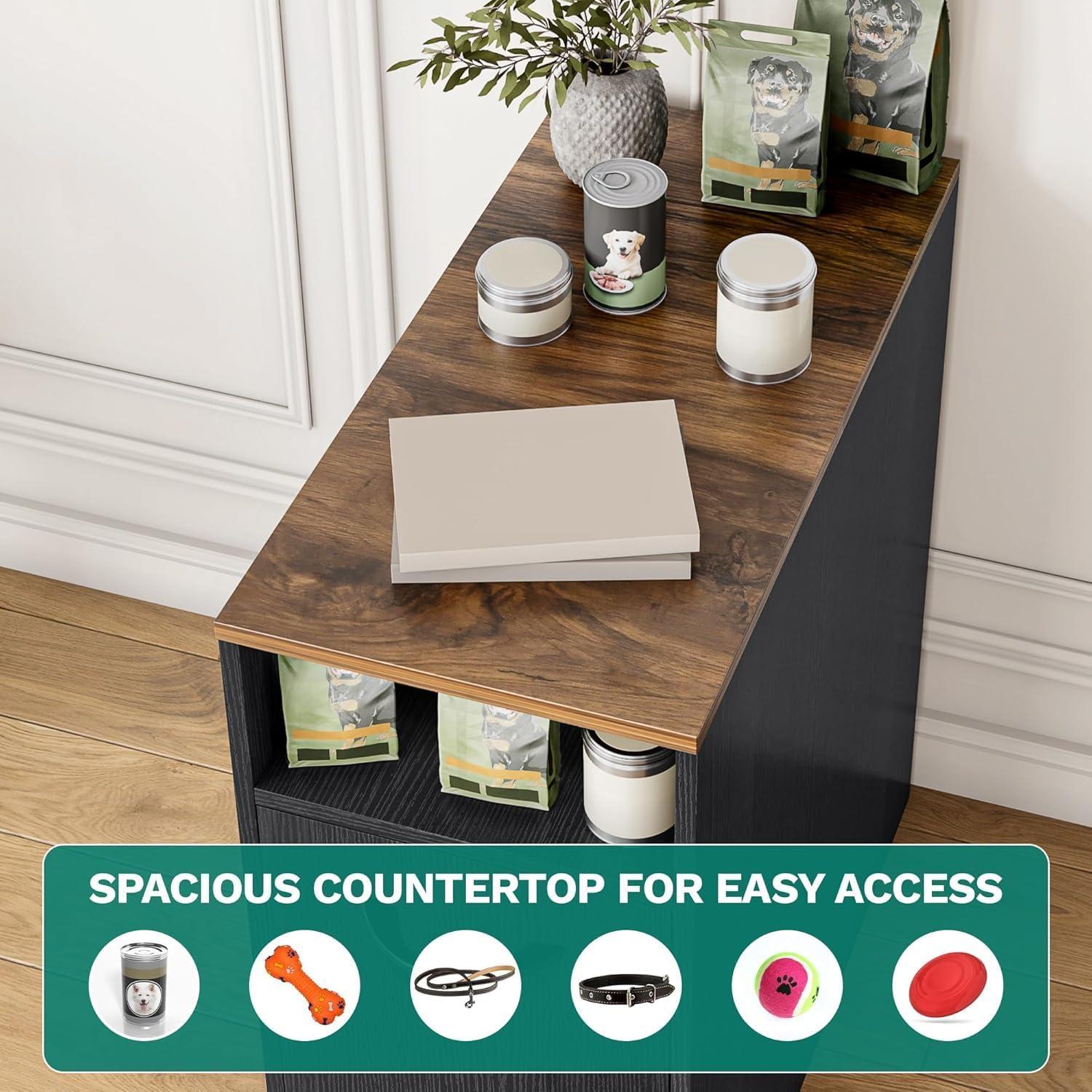 More storage space: The angled pet organizer features a slanted kibble container and a deep open shelf for all your pet accessories