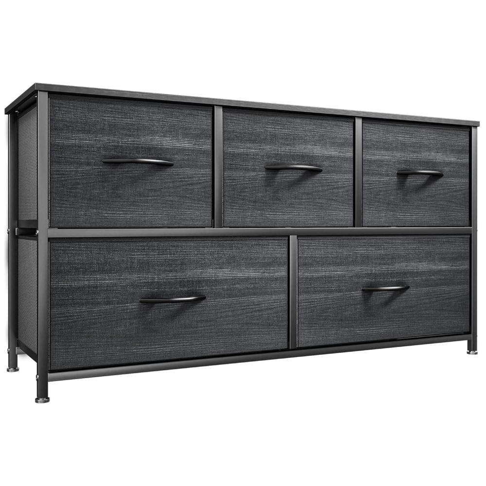 YITAHOME Dresser with 5 Drawers – Fabric Storage Tower, Organizer Unit for Bedroom, Living Room, Closets – Sturdy Steel Frame, Wooden Top(Black Grey)