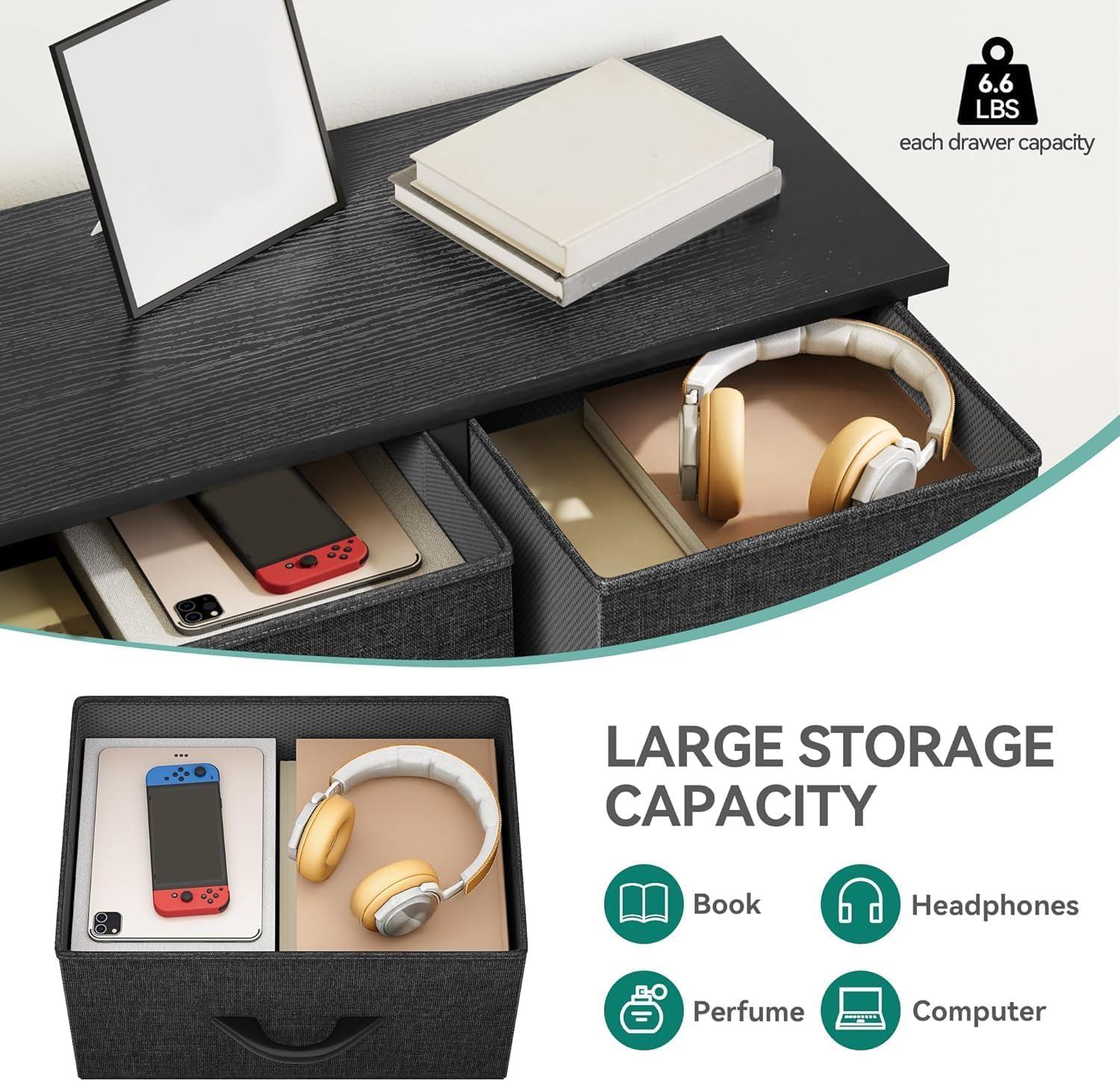UNIVERSALLY COMPLEMENTARY- Sleek cool grey fabric drawers with sturdy black metal frame and wooden tabletop; Enjoy modern scent and stylish aesthetics that easily complements various living spaces: living rooms, bedrooms, hallways, entryways, closets, etc